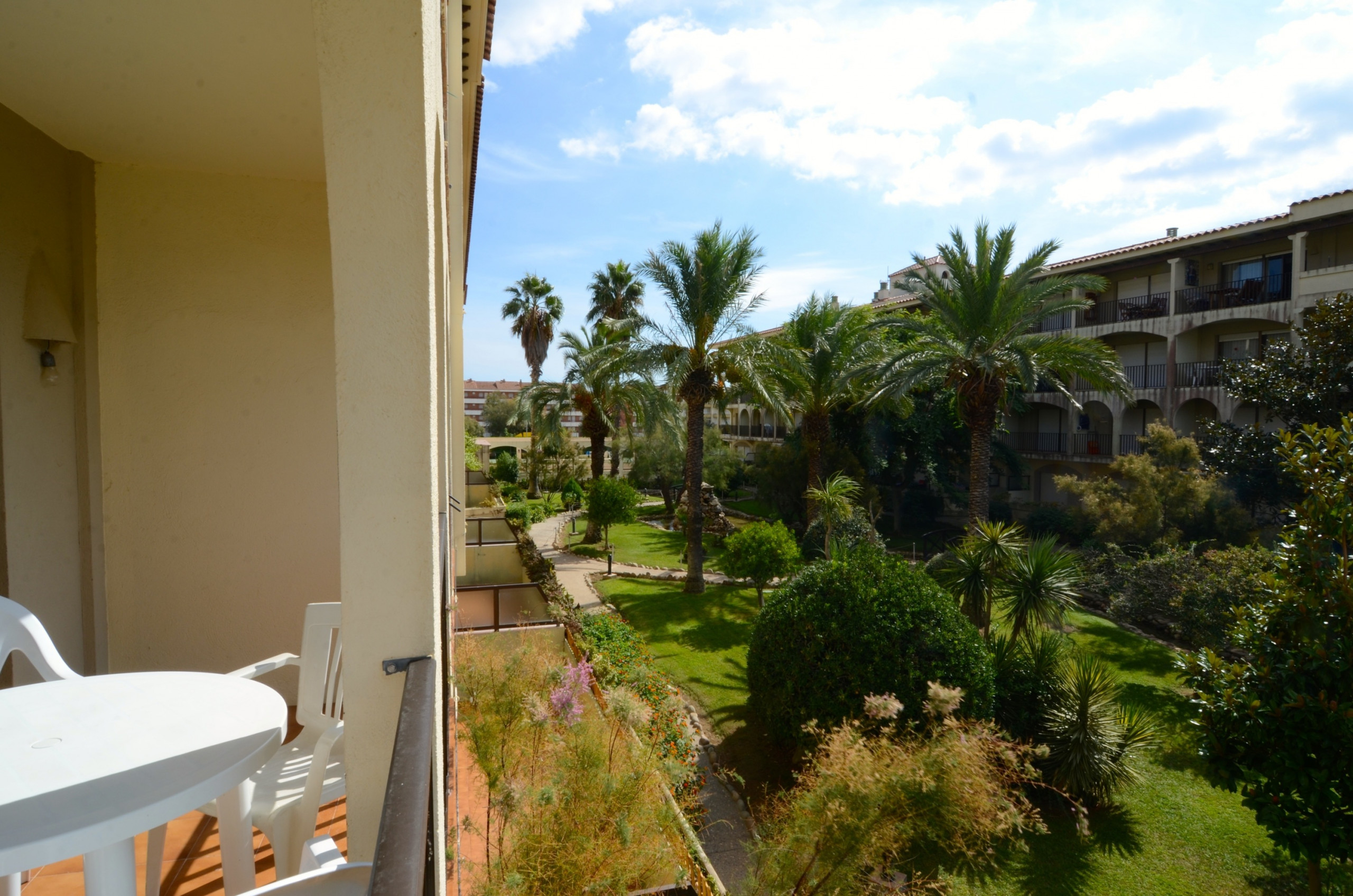 L'apartament té una gran terrassa amb una vista immillorable de tot el complex Rocamaura, amb la piscina als teus peus i les Illes Medes de fons.