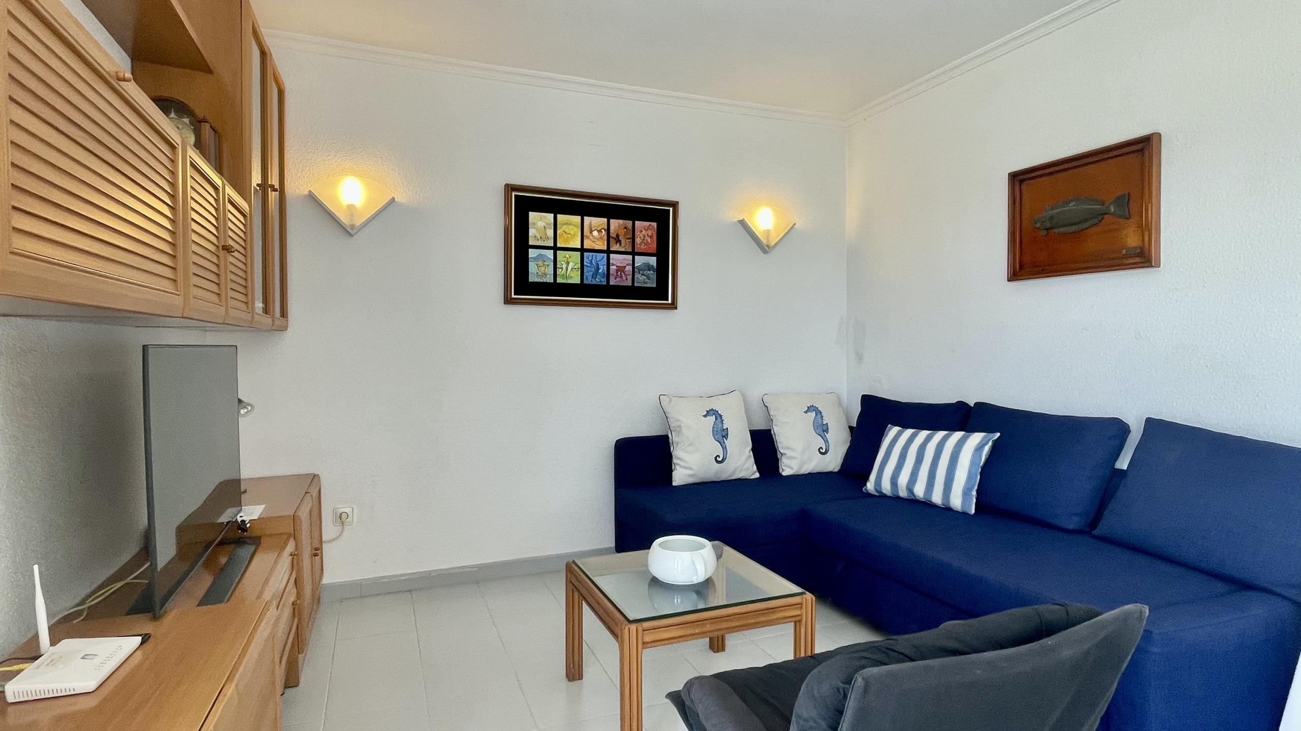 Pujant al nivell superior, us sorprendran dos còmodes llits individuals i una petita sala d'estar equipada amb un pràctic sofà llit i TV, perfecte per relaxar-vos després d'un divertit dia a la platja.
