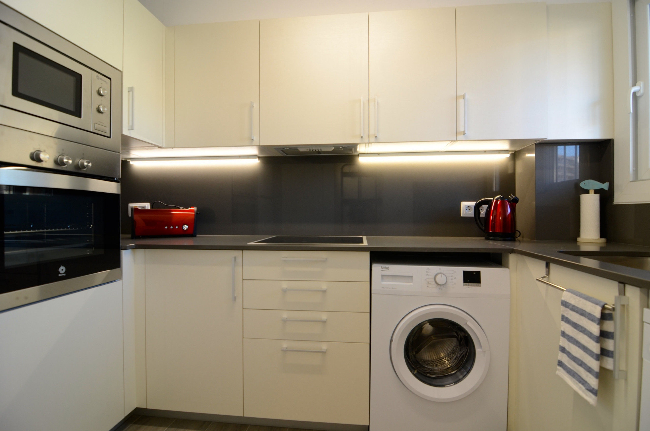 La cuina independent, equipada amb electrodomèstics de vitroceràmica, inclou nevera, microones, forn, congelador, rentadora, rentaplats, vaixella/cuberts, estris de cuina, cafetera, paella, torradora, bullidor d'aigua i espremedor.