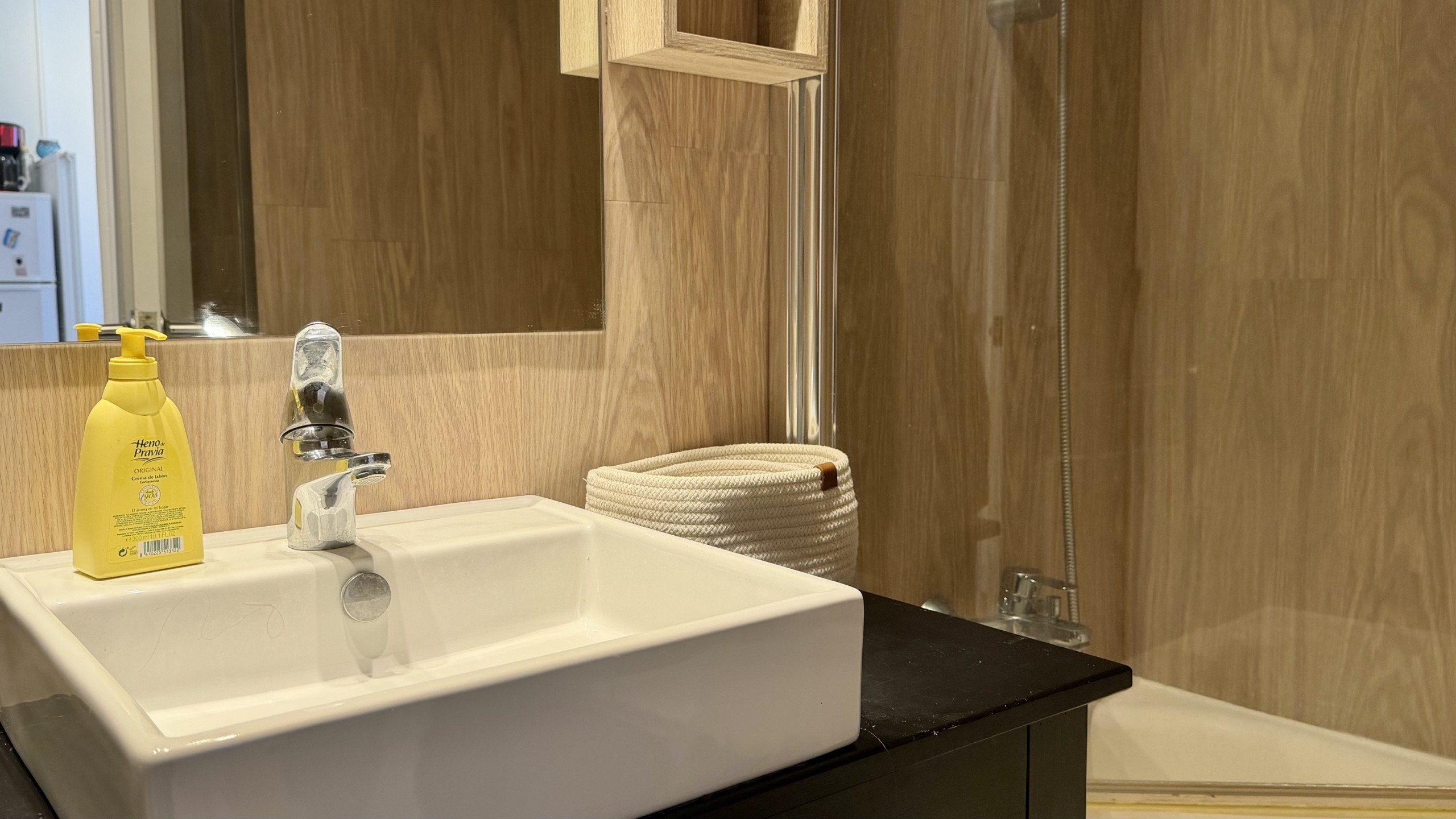 A l'interior, trobaràs un dormitori amb un llit de matrimoni i un sofà llit addicional, la qual cosa ofereix flexibilitat per a diferents configuracions de descans. La cuina americana està completament equipada amb electrodomèstics moderns com nevera, forn, microones, rentaplats i màquina de cafè, permetent-te preparar deliciosos àpats.