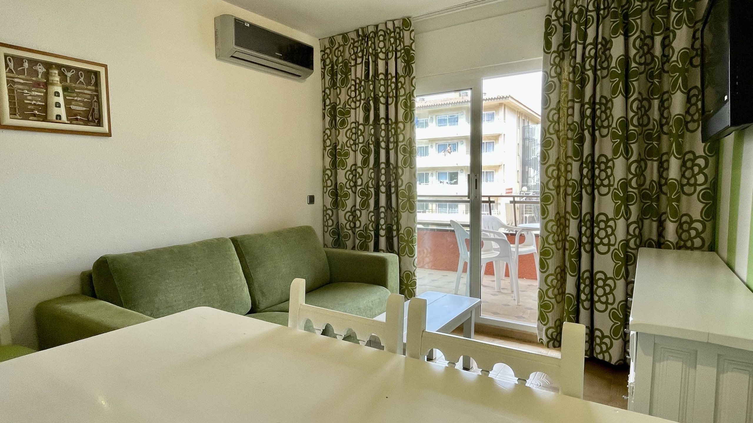 En el complex Rocamaura, aquest apartament d'una habitació està disponible per llogar per a les vacances, amb un llit superposat doble i un llit individual amb capacitat per a 3 persones. Sala d'estar-menjador amb sofà i TV, petita cuina independent i bany amb dutxa.