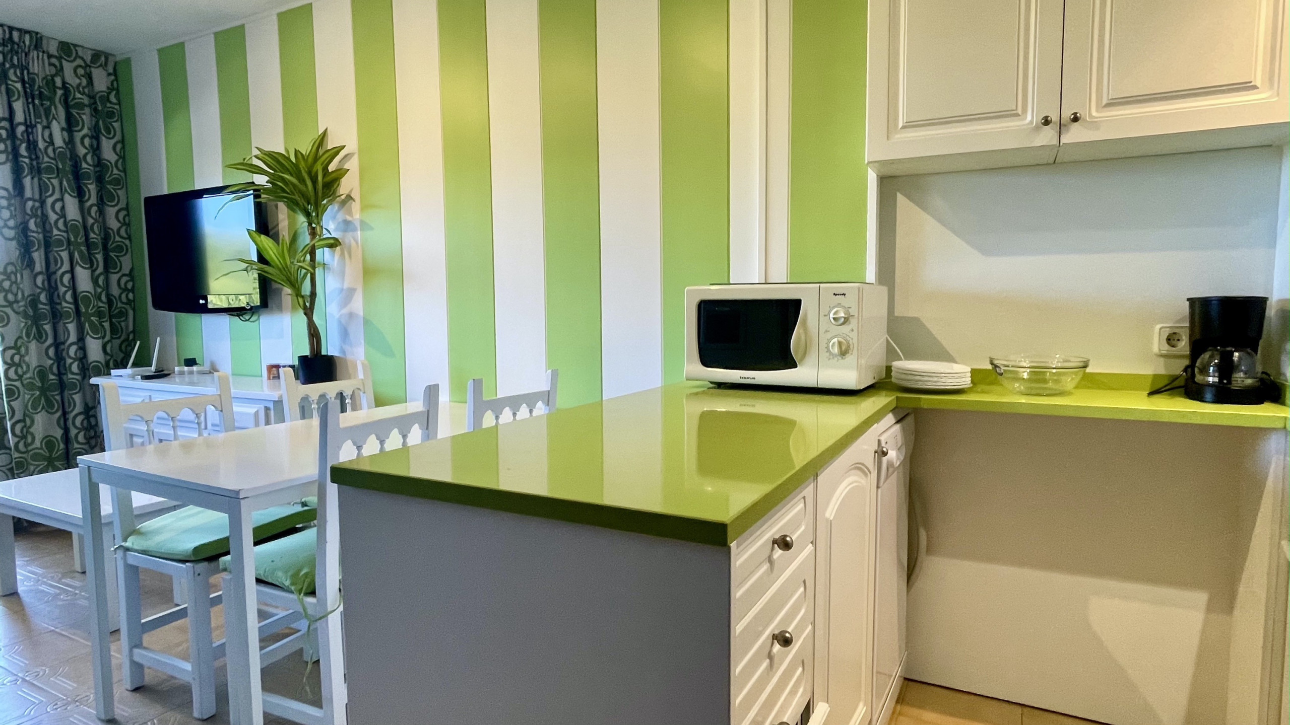 L´apartament compta amb un dormitori i un bany, a més d´una cuina americana totalment equipada que inclou nevera, microones, forn, congelador, rentadora, rentavaixelles, vaixella/coberteria, estris de cuina, cafetera i torradora. La sala d´estar és acollidora i està equipada amb un televisor i aire condicionat. La terrassa de l'apartament és perfecta per gaudir d'una tassa de cafè o menjar a l'aire lliure. Les llençols estan incloses i si necessiteu tovalloles de bany estan disponibles a 5 euros/persona.