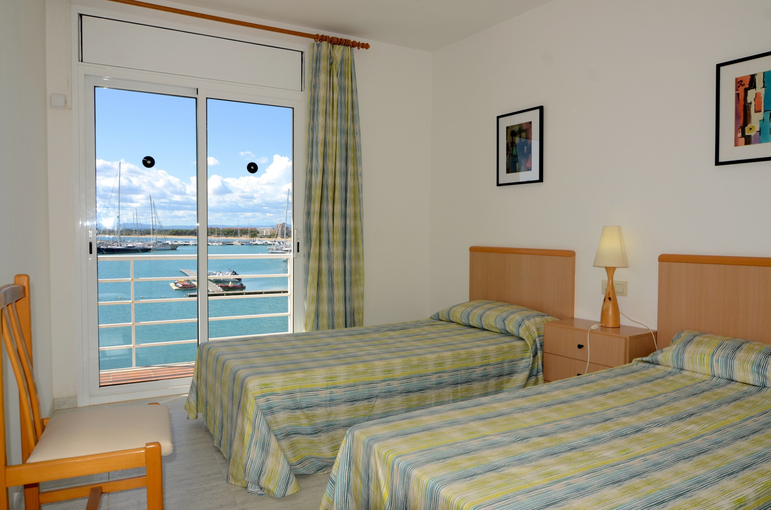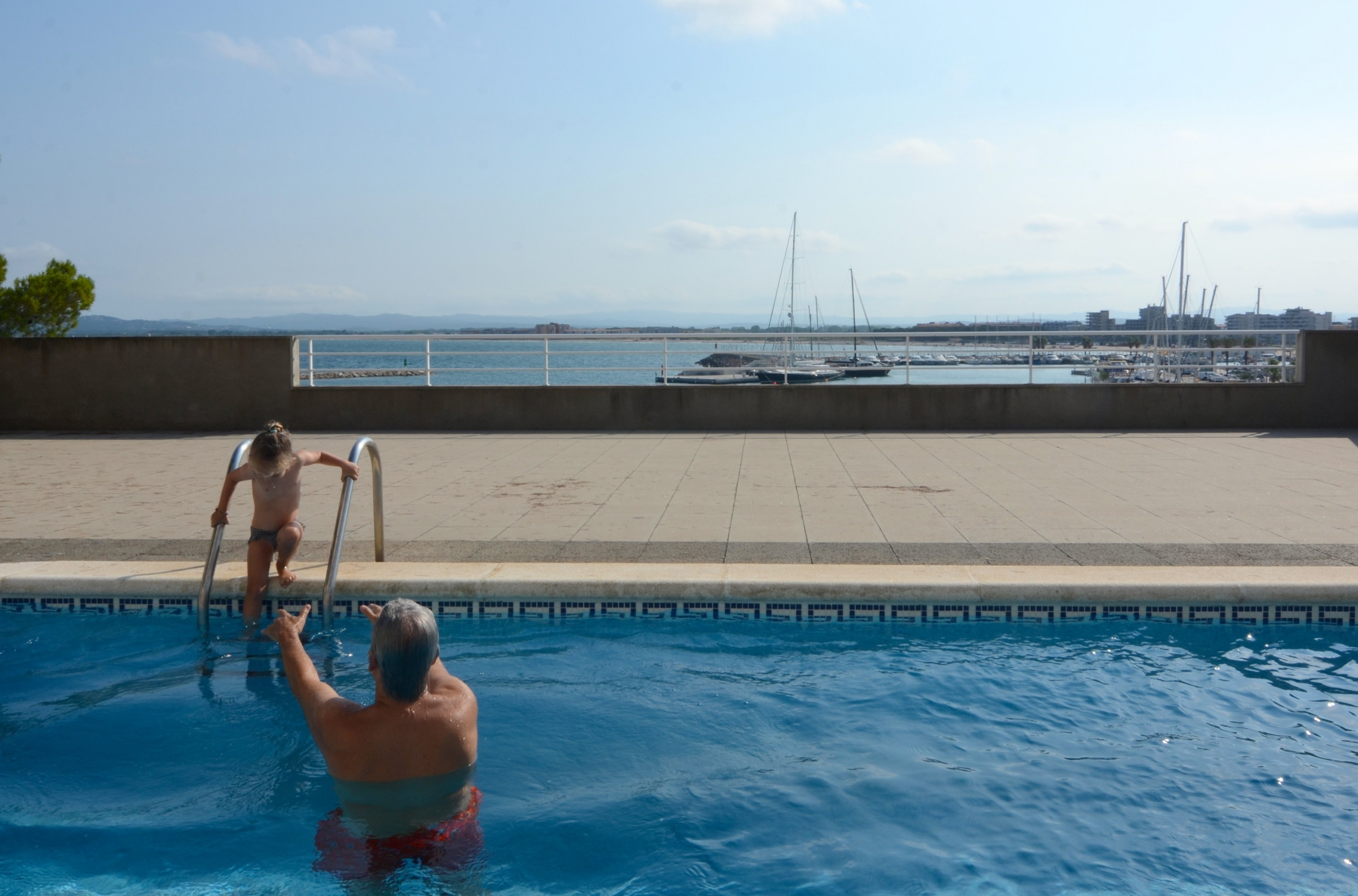 L'apartament té una gran terrassa amb una vista immillorable de tot el complex Rocamaura, amb la piscina als teus peus i les Illes Medes de fons.