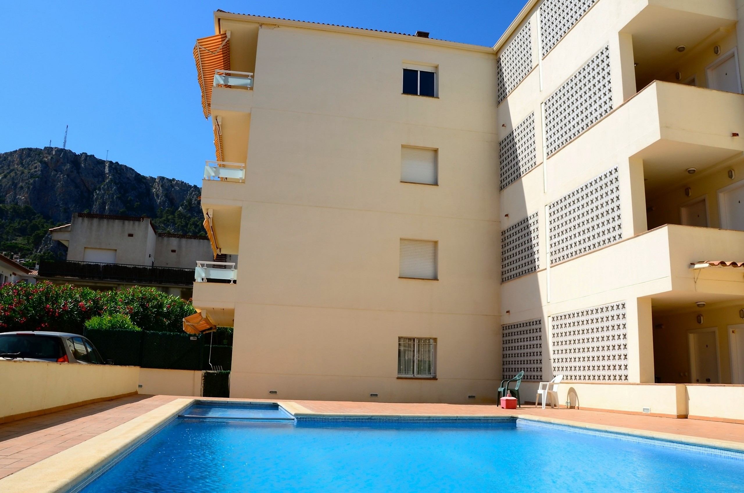 L'apartament té una gran terrassa amb una vista immillorable de tot el complex Rocamaura, amb la piscina als teus peus i les Illes Medes de fons.