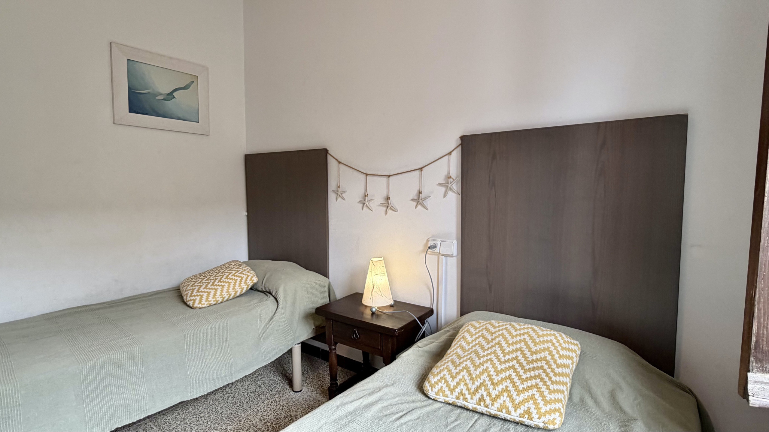 L'apartament compta amb dues habitacions equipades amb tres llits: un llit litera, un llit de matrimoni i un sofà-llit, garantint un descans còmode per a tots els hostes. Disposa d'un únic lavabo amb banyera, ideal per relaxar-se després d'un dia de platja.