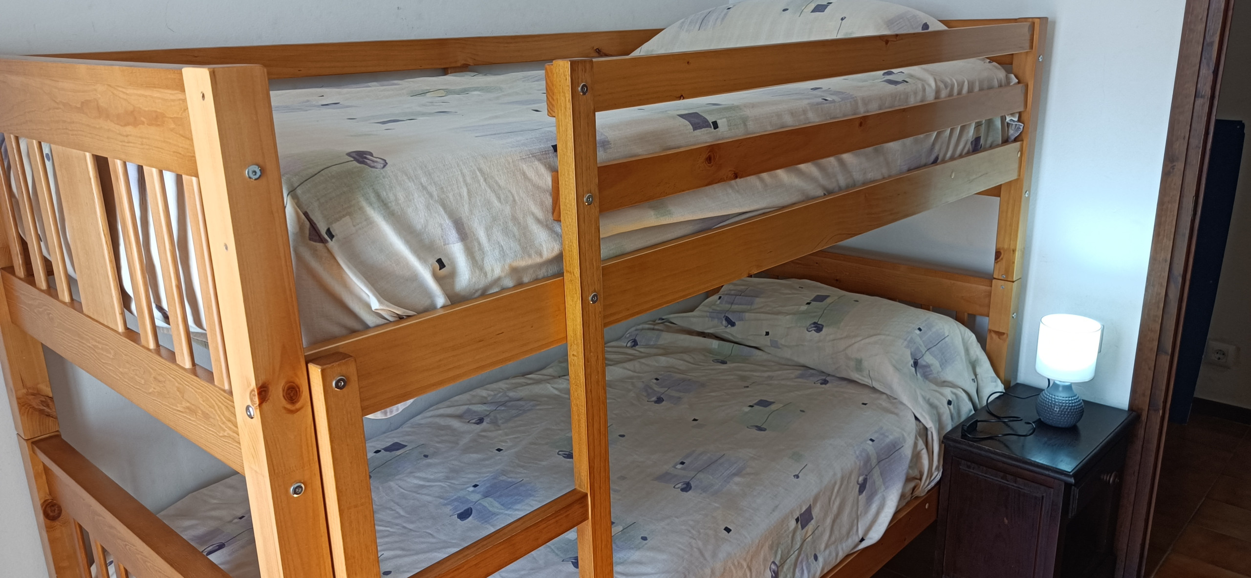 L'apartament compta amb dues habitacions equipades amb tres llits: un llit litera, un llit de matrimoni i un sofà-llit, garantint un descans còmode per a tots els hostes. Disposa d'un únic lavabo amb banyera, ideal per relaxar-se després d'un dia de platja.