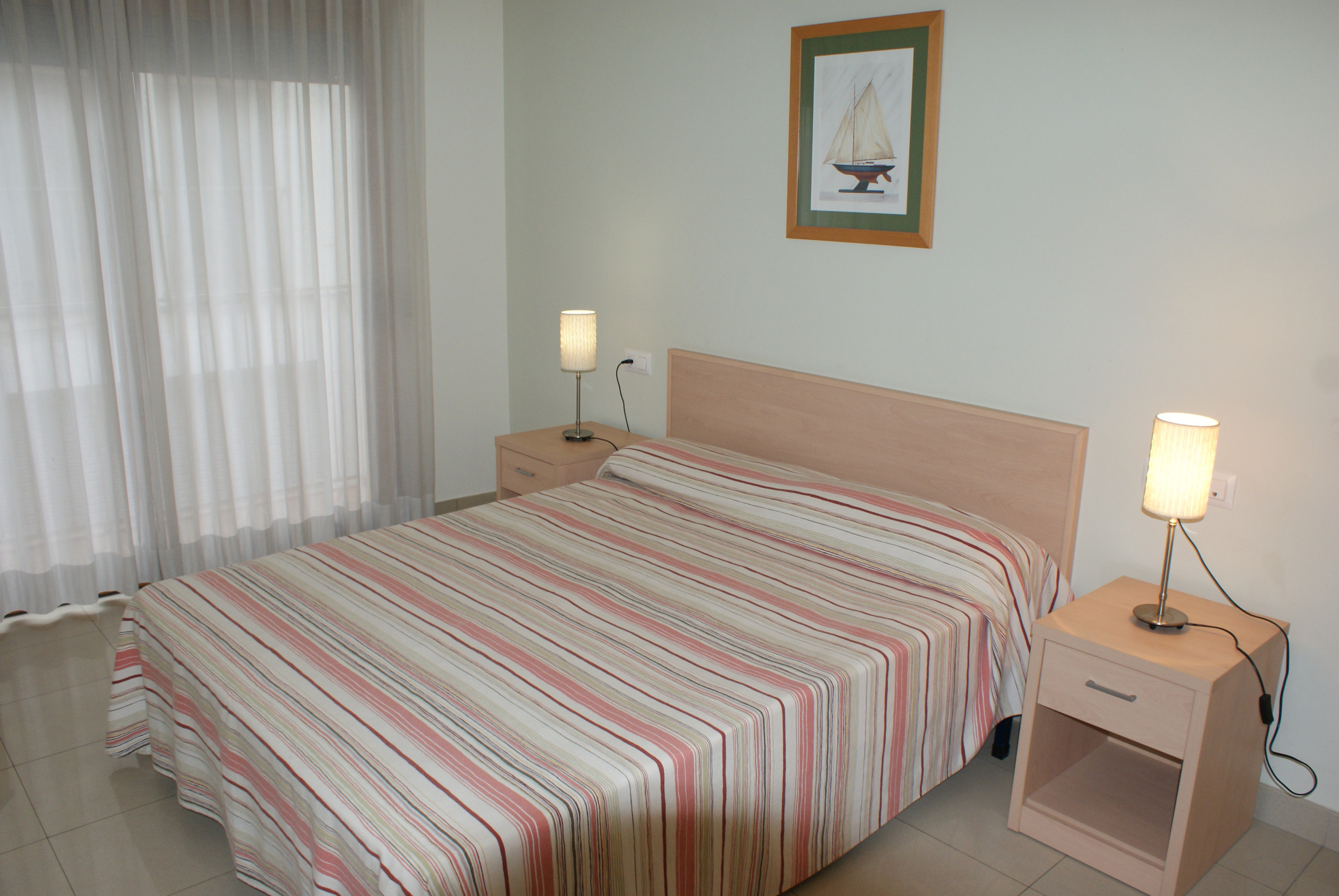L'apartament compta amb dues habitacions equipades amb tres llits: un llit litera, un llit de matrimoni i un sofà-llit, garantint un descans còmode per a tots els hostes. Disposa d'un únic lavabo amb banyera, ideal per relaxar-se després d'un dia de platja.