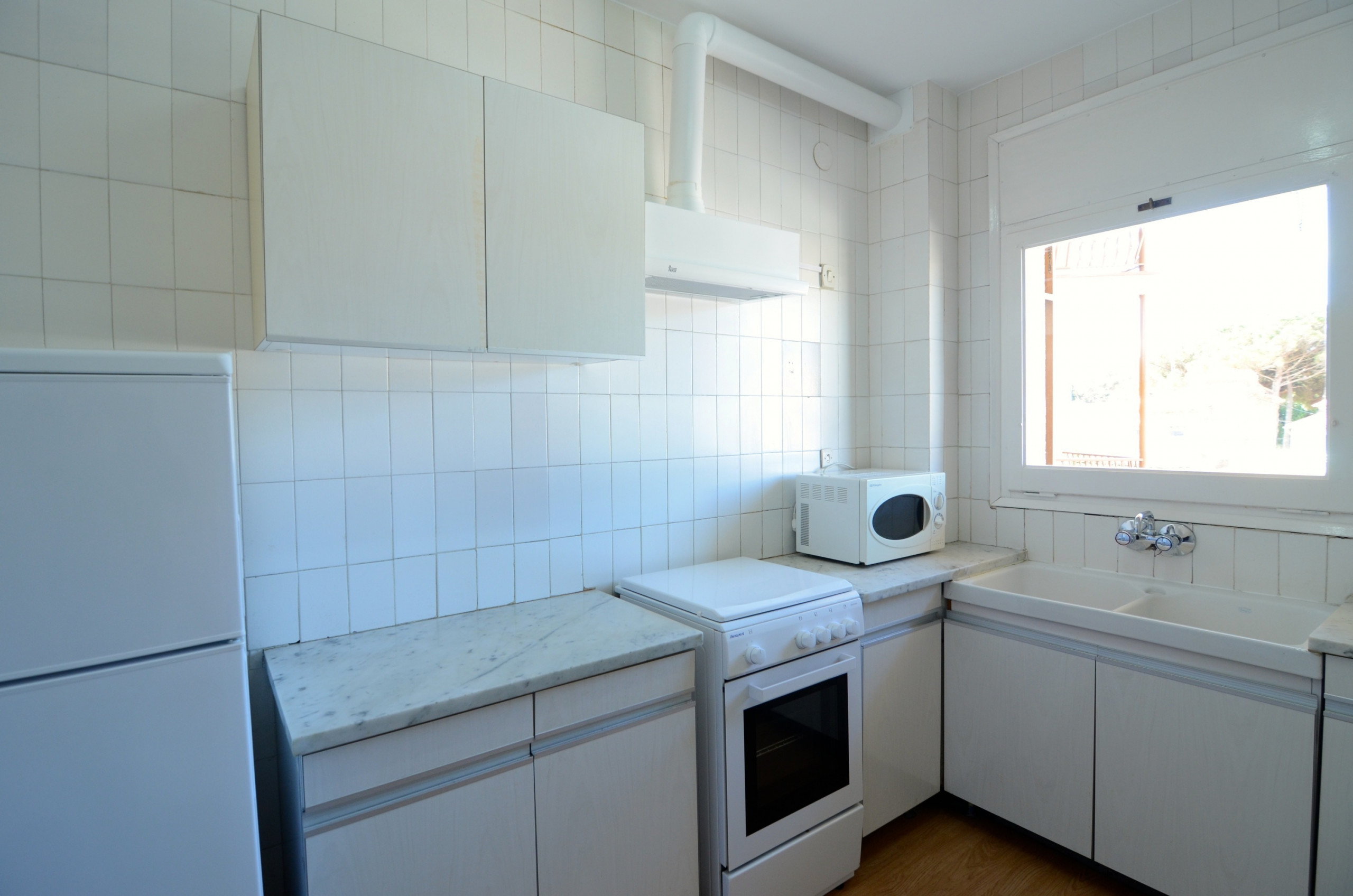 La cuina, completament independent i equipada amb gas, compta amb tots els electrodomèstics necessaris per preparar àpats familiars: nevera, rentadora, microones, màquina de cafè, vaixella i kitchenware. Un espai pràctic i funcional que facilitarà la vostra estada.
