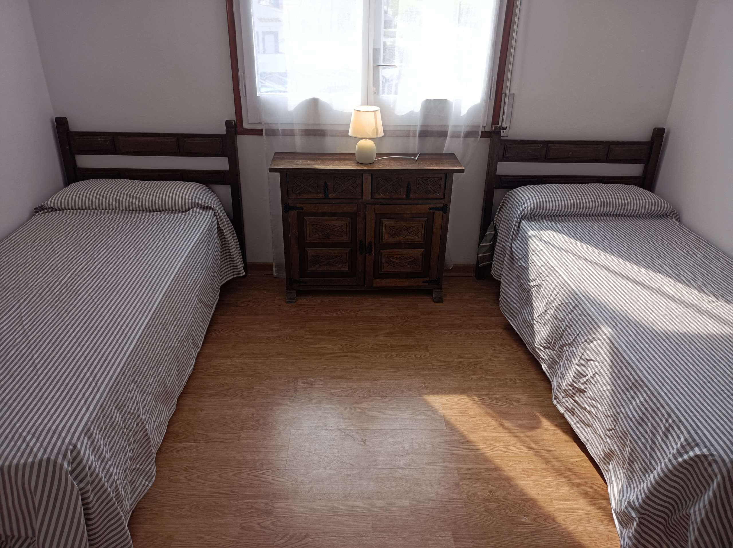 L'apartament disposa d'una habitació amb tres llits: un llit litera, un llit de matrimoni i un sofà-llit de matrimoni, ideal per a famílies o grups petits. Compta amb un únic lavabo amb dutxa, la qual cosa garanteix la comoditat durant l'estada.