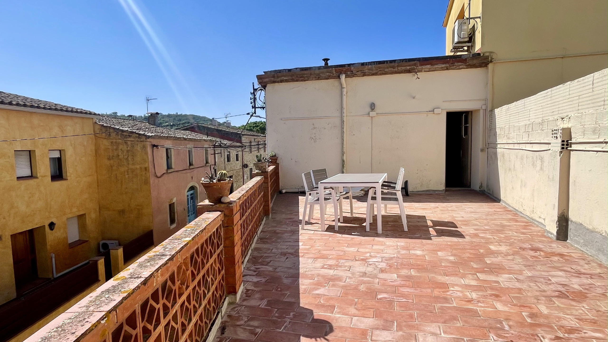Sens dubte, un dels punts forts del pis és la seva gran terrassa, perfecta per a esmorzars a l'aire lliure, sopars relaxats o simplement per contemplar les teulades del poble mentre es gaudeix de la tranquil·litat del lloc. És una opció ideal per a aquells que busquen una escapada amb encant, en un entorn històric i amb el sabor autèntic d'un poble amb història.