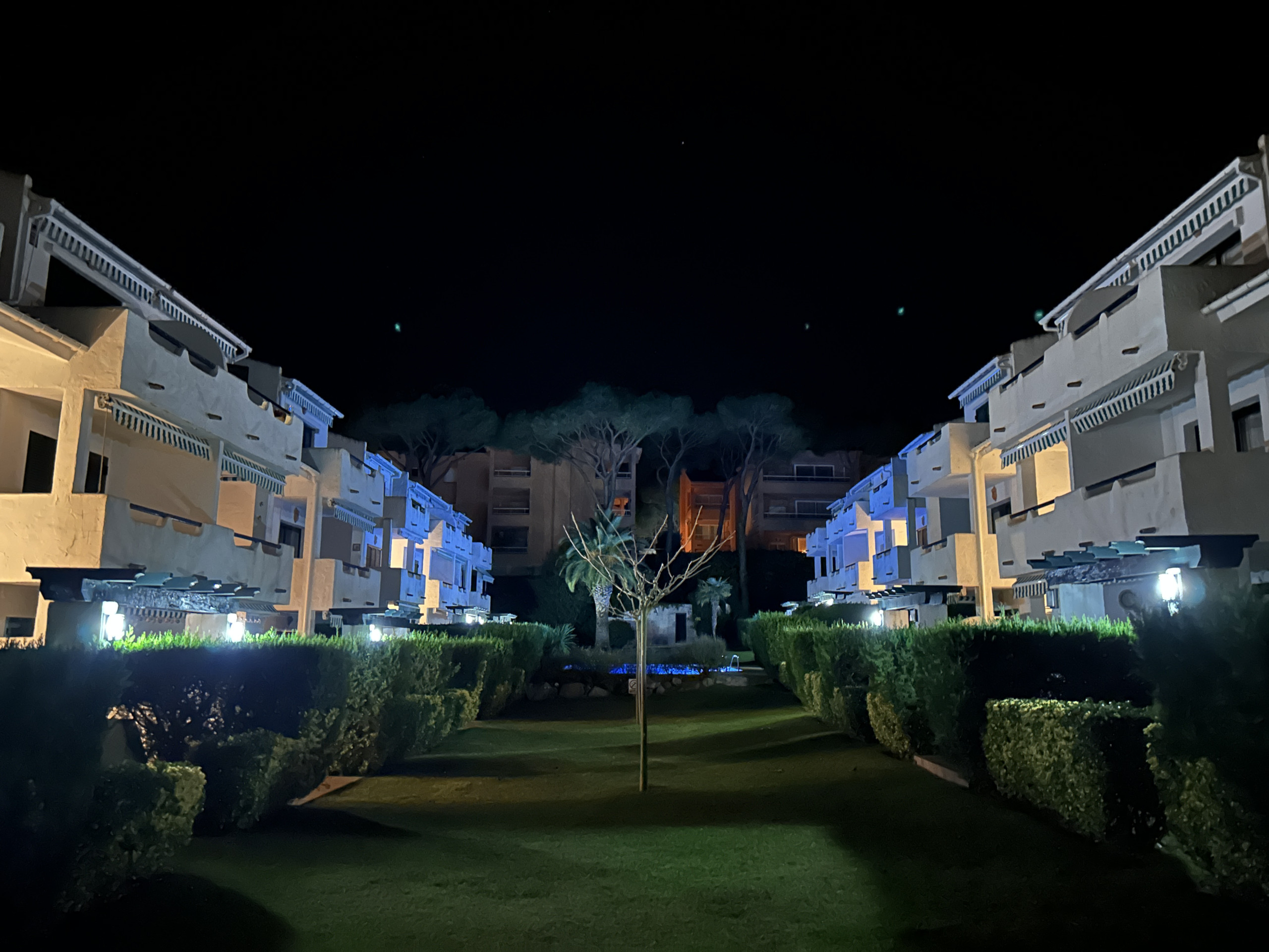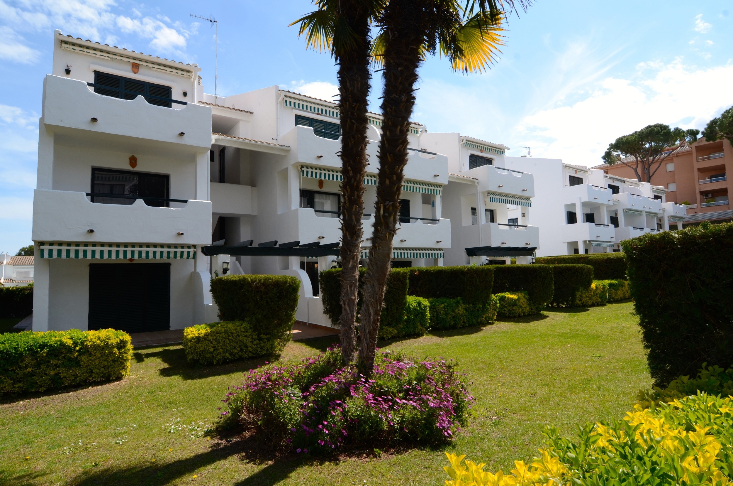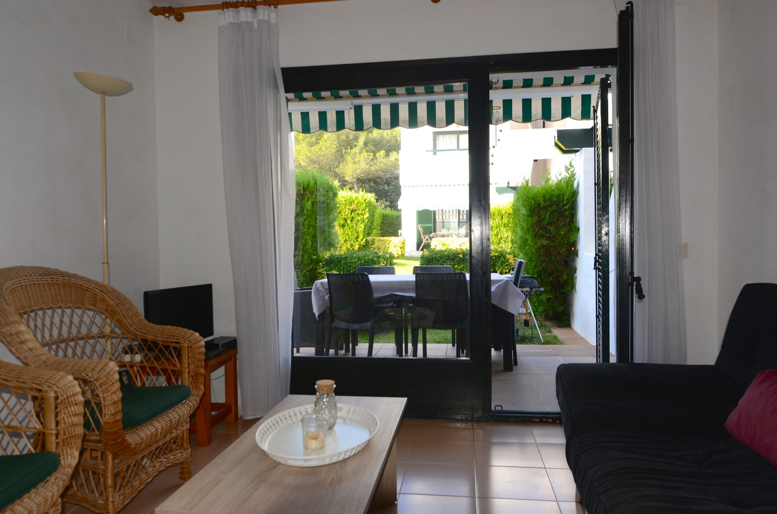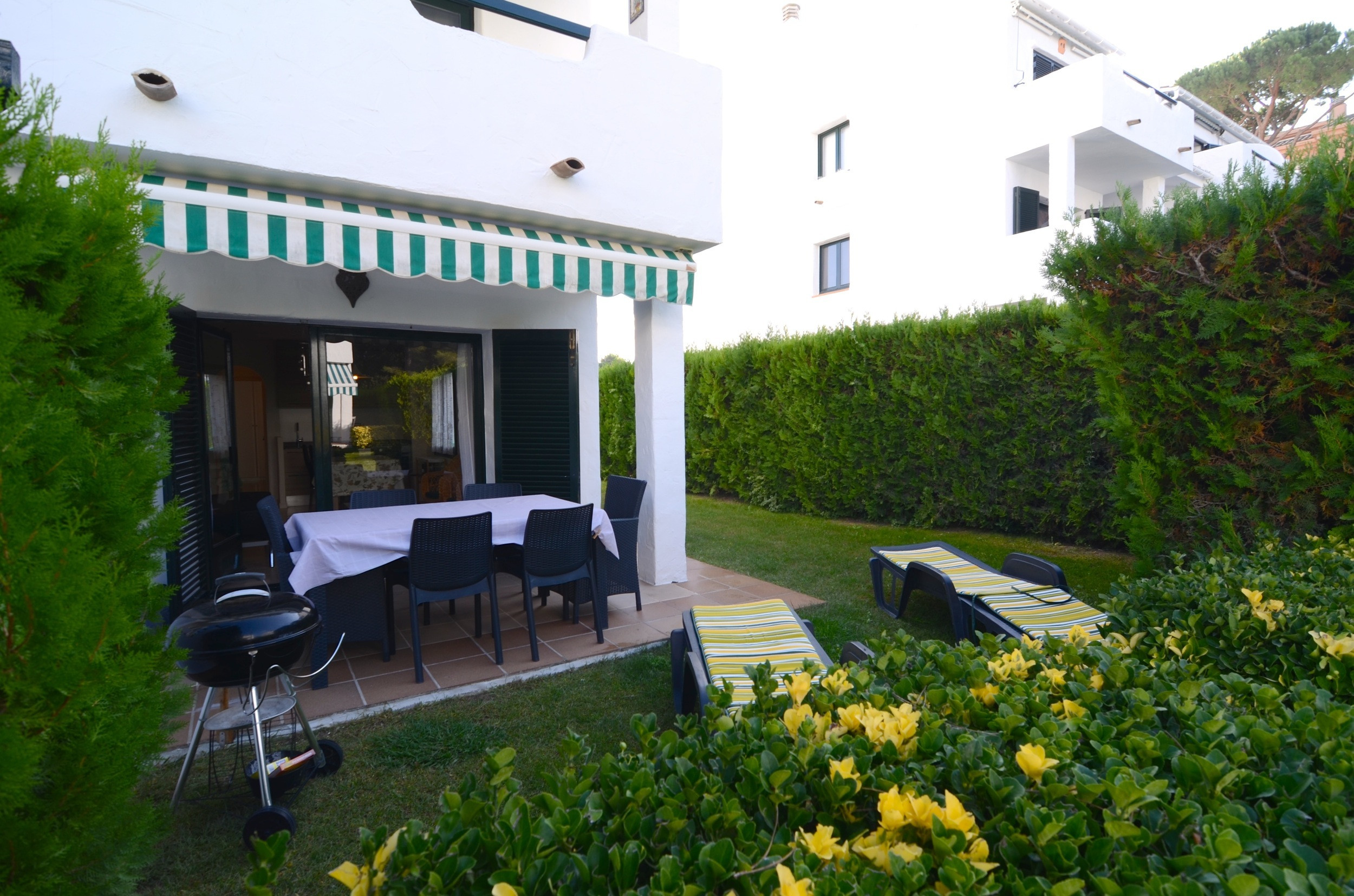 Aquest apartament a la planta baixa té un gran jardí privat amb accés directe a la zona de la piscina comunitària. Té barbacoa, hamaques i una taula per menjar a l'aire lliure.