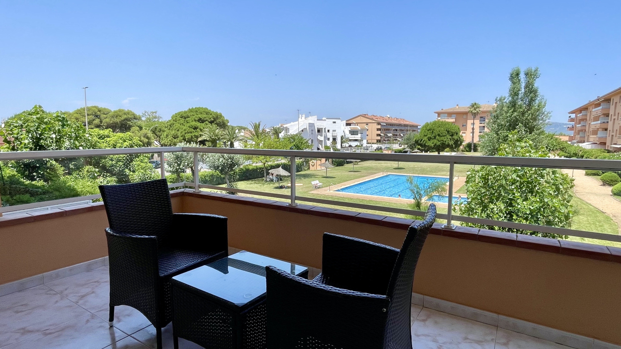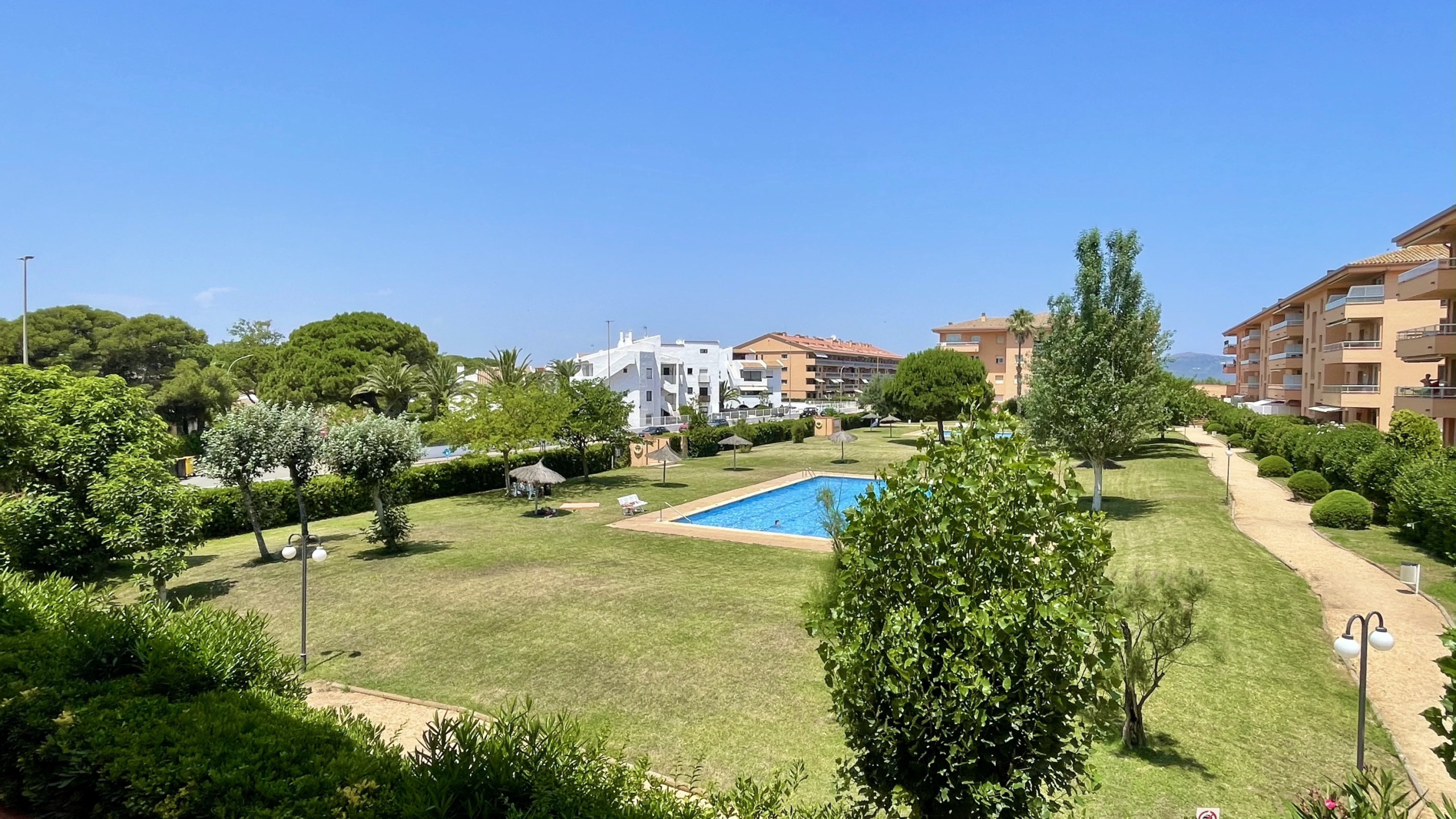 La zona comunitària amb gran jardí, piscina i piscina infantil és un plus a aquest apartament, per no dir de la situació a peu de platja.