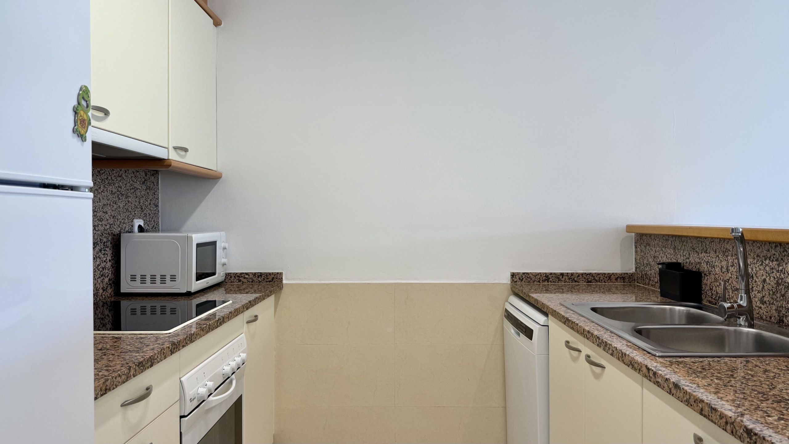 La cuina americana, de vitroceràmica, està equipada amb nevera, microones, rentadora, vaixella/coberteria, estris/cuina, cafetera i torradora.