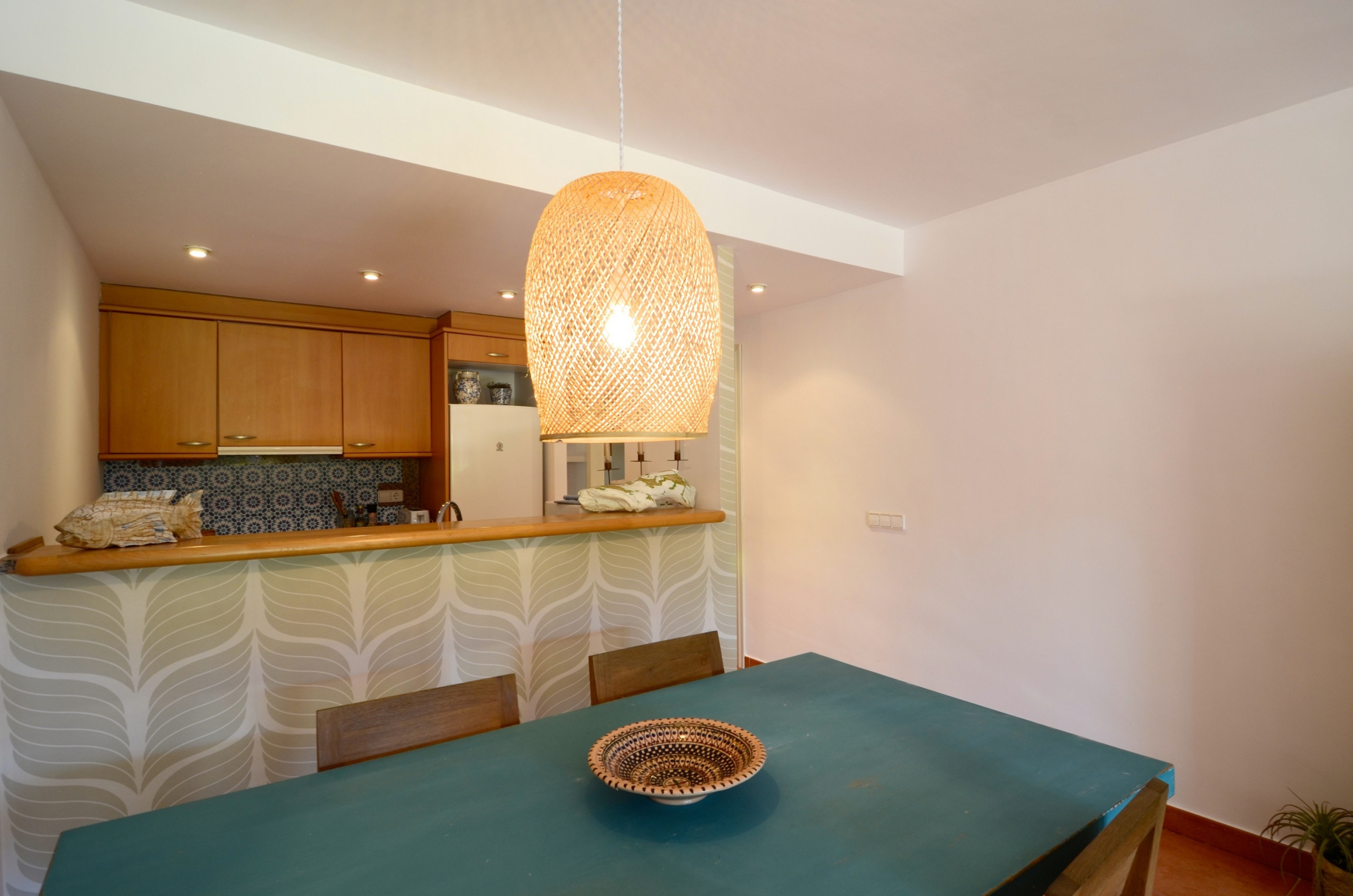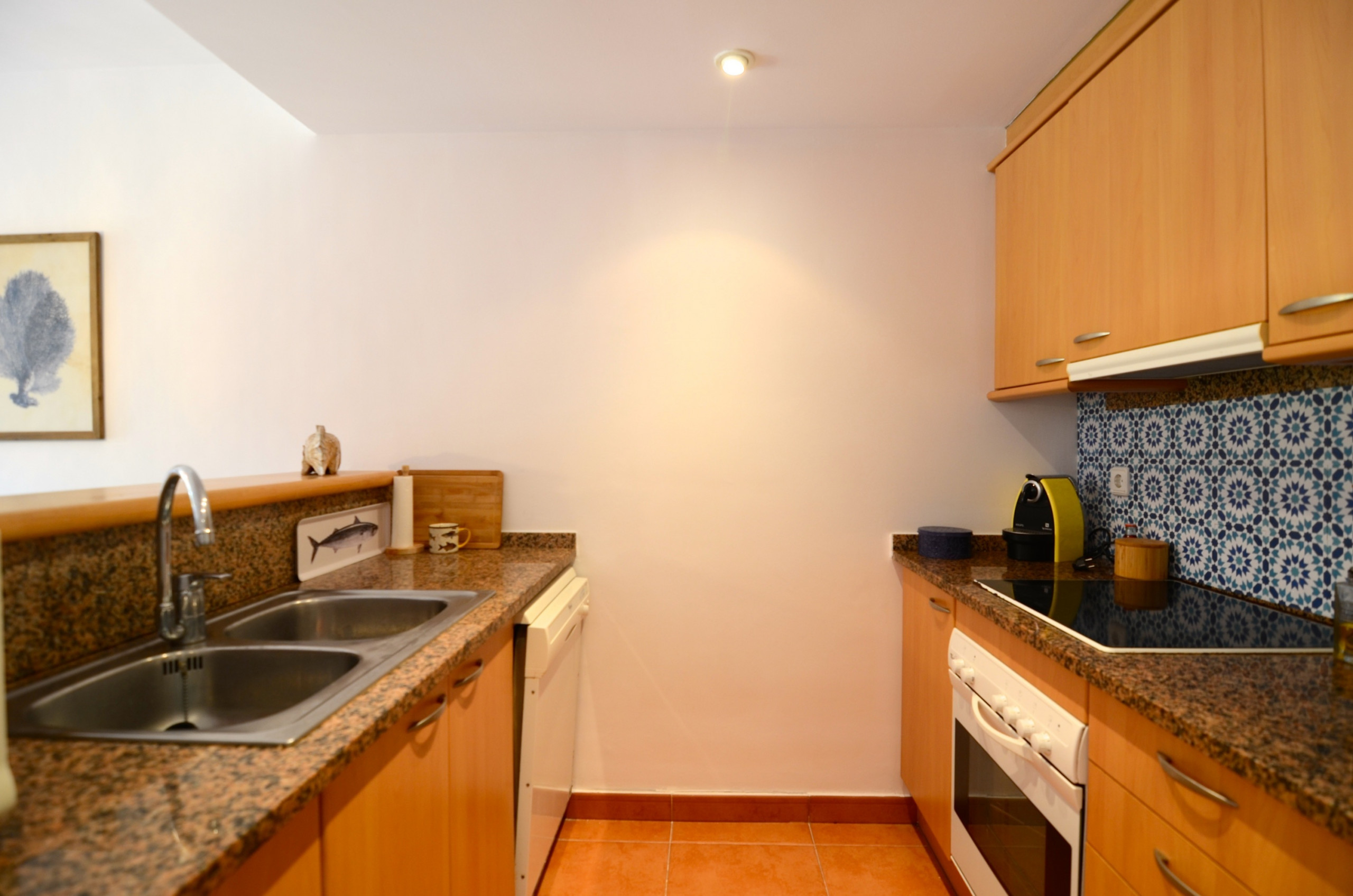La cuina americana, de vitroceràmica, està equipada amb nevera, microones, forn, congelador, rentadora, rentaplats, vaixella/coberteria, estris/cuina, cafetera i torradora.