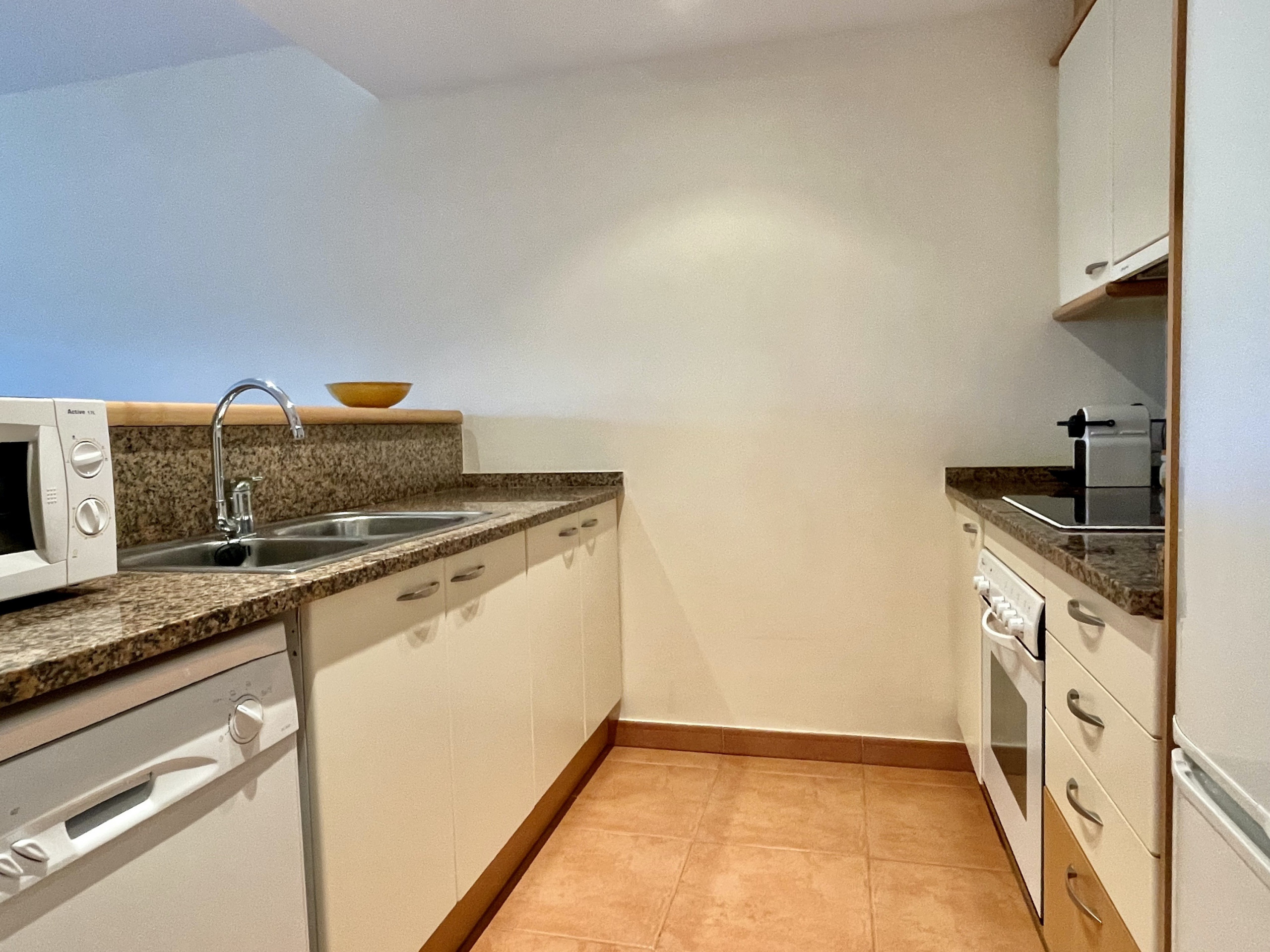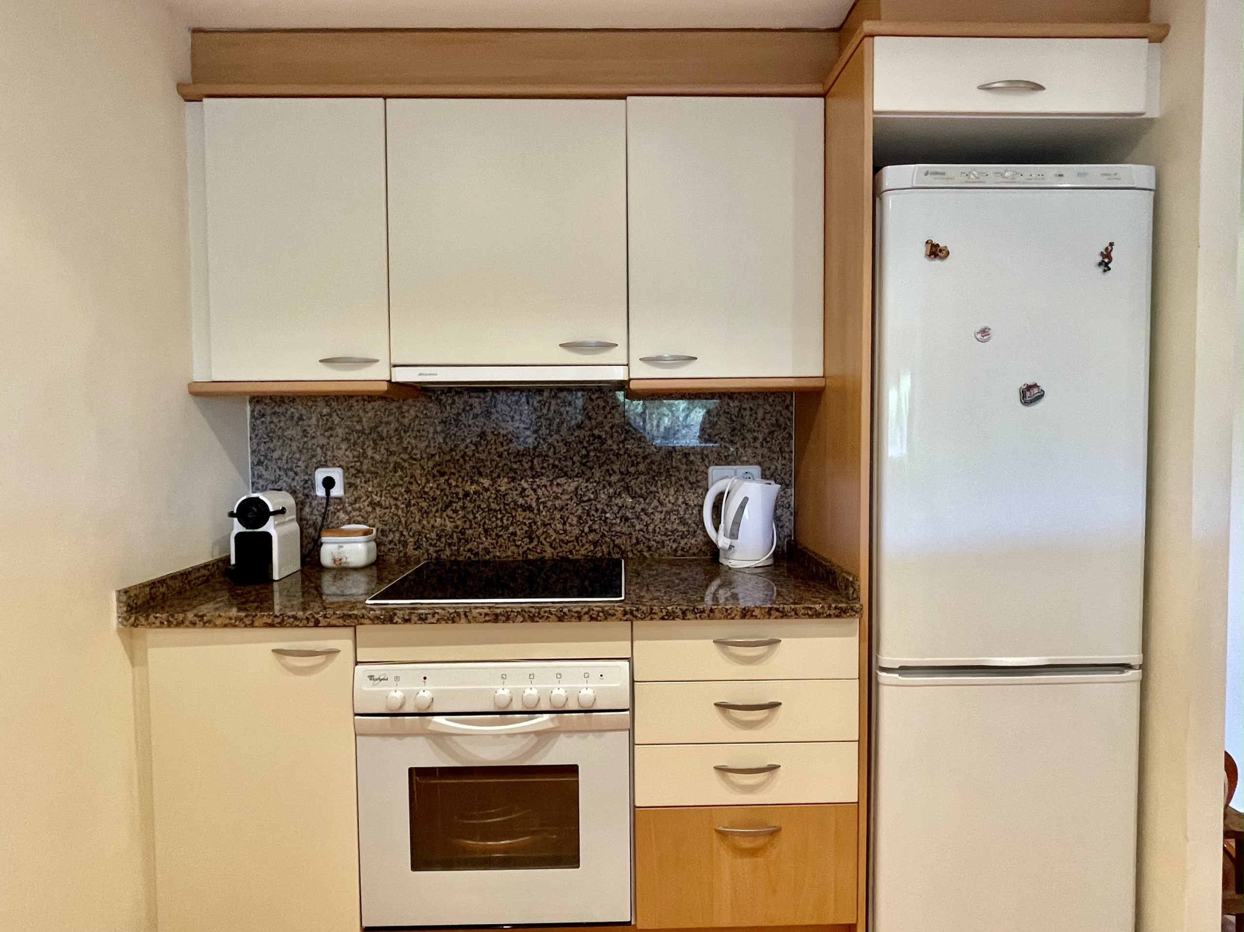 La cuina americana, de vitroceràmica, està equipada amb nevera, microones, rentadora, vaixella/coberteria, estris/cuina, cafetera i torradora.