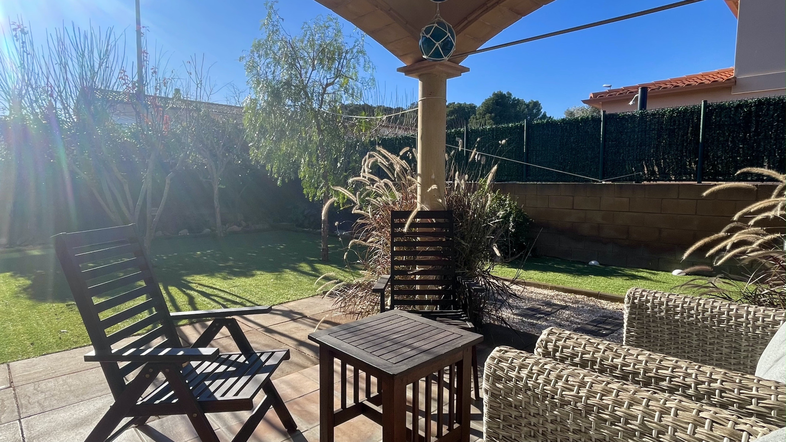 Els espais exteriors són un punt culminant, amb terrassa, jardí moblat, barbacoa i parcel·la tancada que permet gaudir de moments a l'aire lliure. Tot i que no s'admeten mascotes, l'entorn és ideal per a famílies que busquen tranquil·litat.
