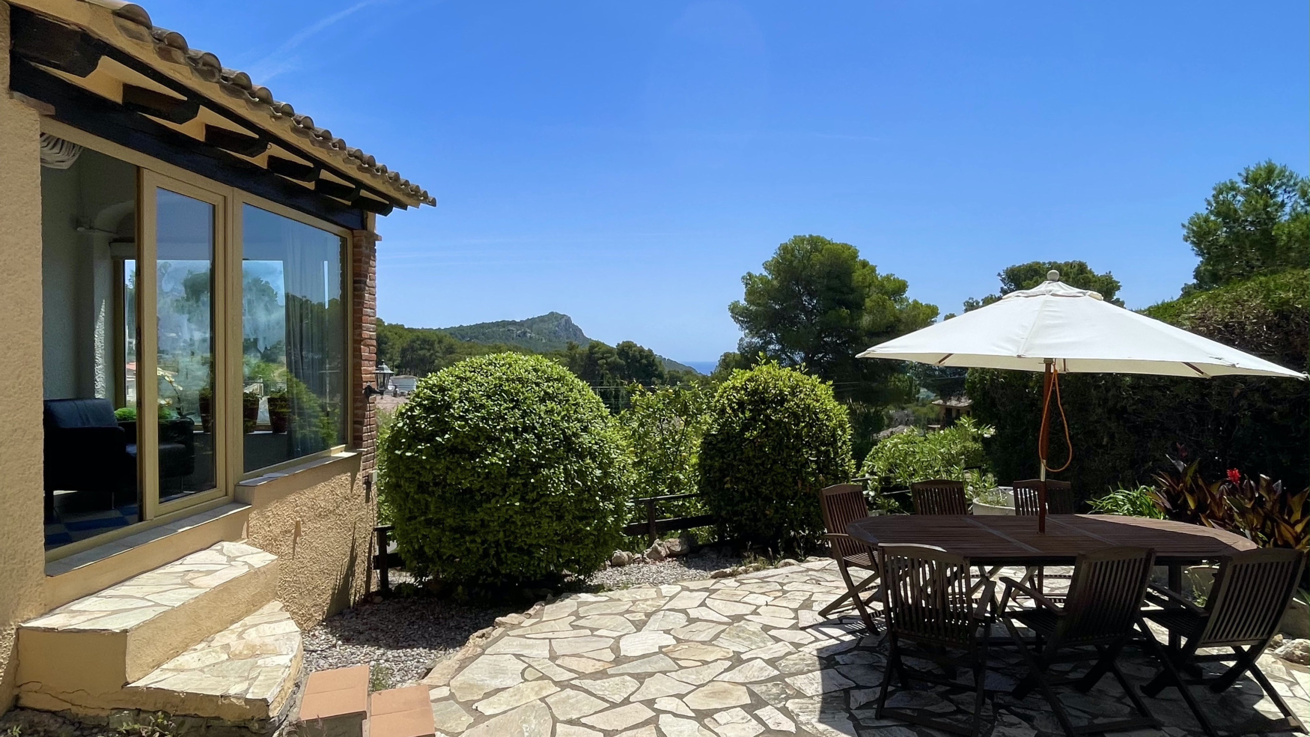 A l'exterior, la casa compta amb una gran terrassa ideal per a menjars a l'aire lliure, un bell jardí mediterrani perfecte per relaxar-se, mobles de jardí i un terreny tancat que ofereix privacitat i seguretat. També hi ha un aparcament exterior disponible a la propietat. Per a la vostra comoditat, la casa està equipada amb una rentadora, una planxa i un televisor.