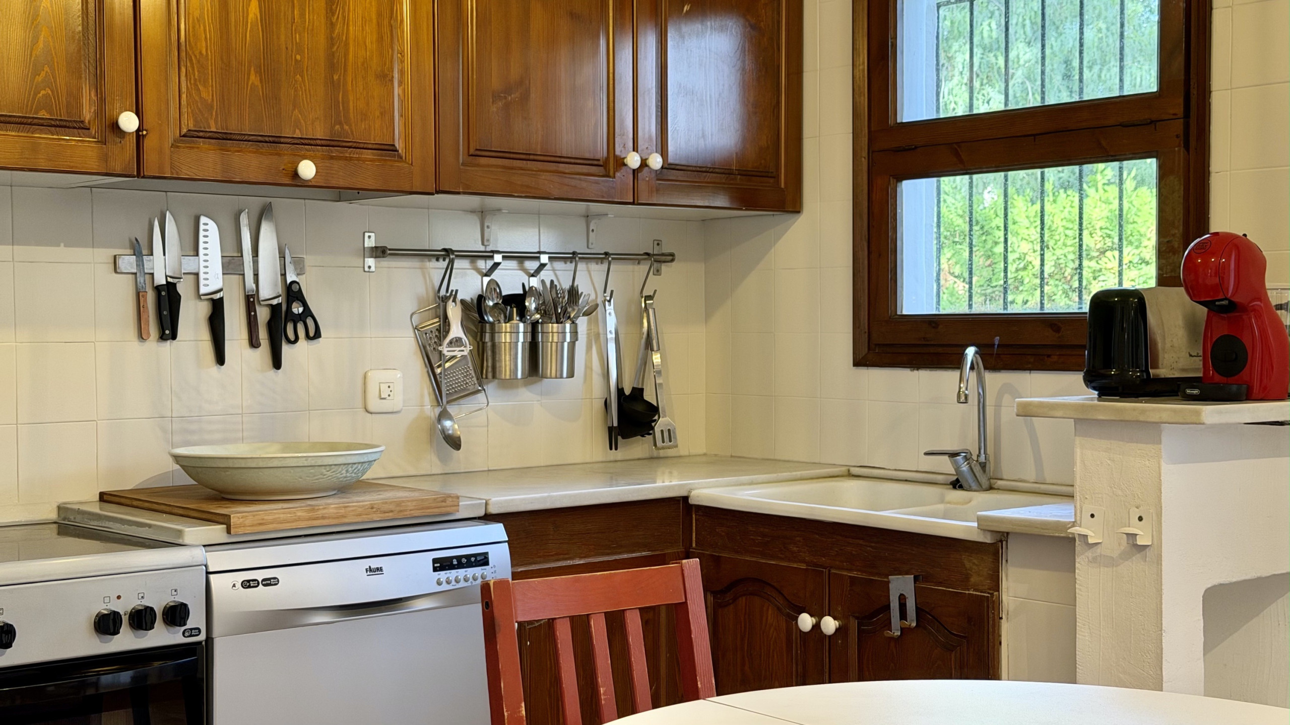 La cuina, està equipada amb nevera, microones, forn, congelador, rentadora, vaixella/coberteria, estris/cuina, cafetera i torradora.