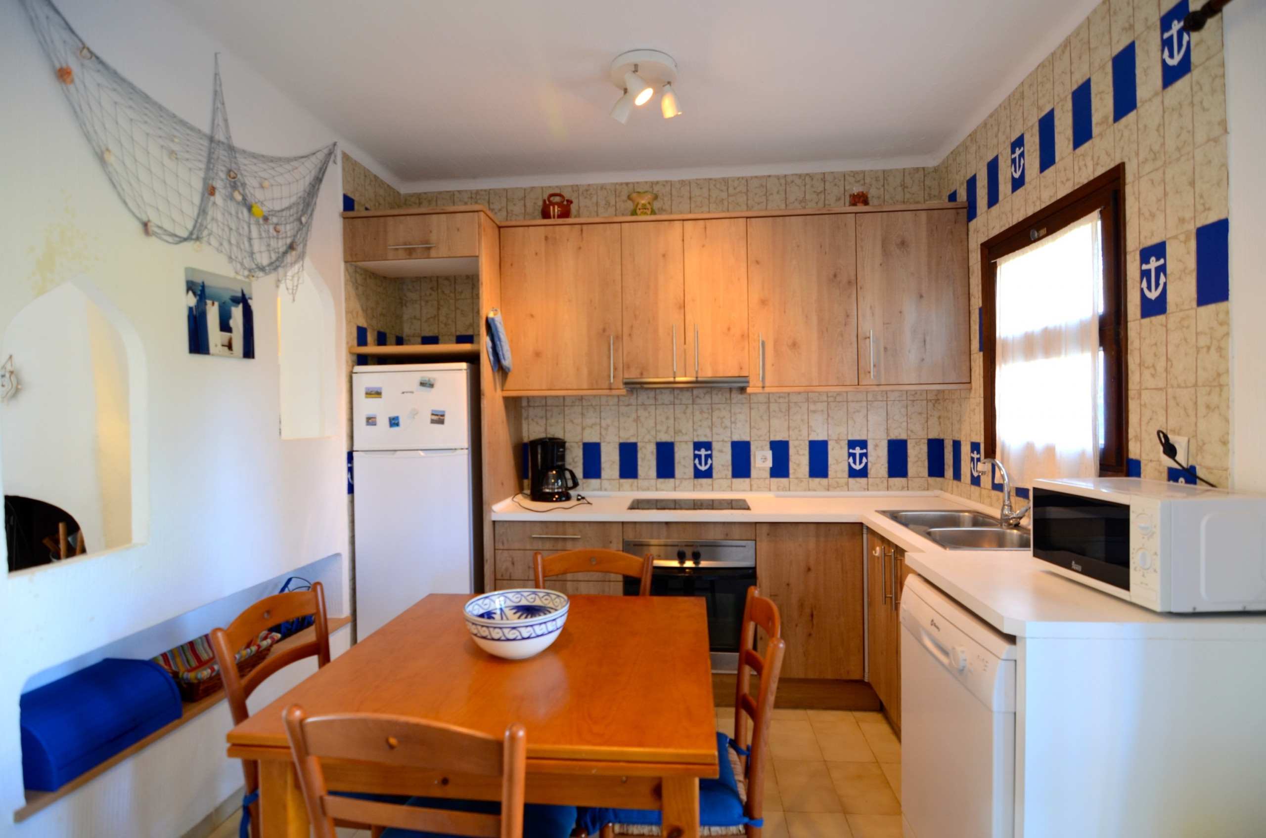 La cuina, està equipada amb nevera, microones, forn, congelador, rentadora, vaixella/coberteria, estris/cuina, cafetera i torradora.