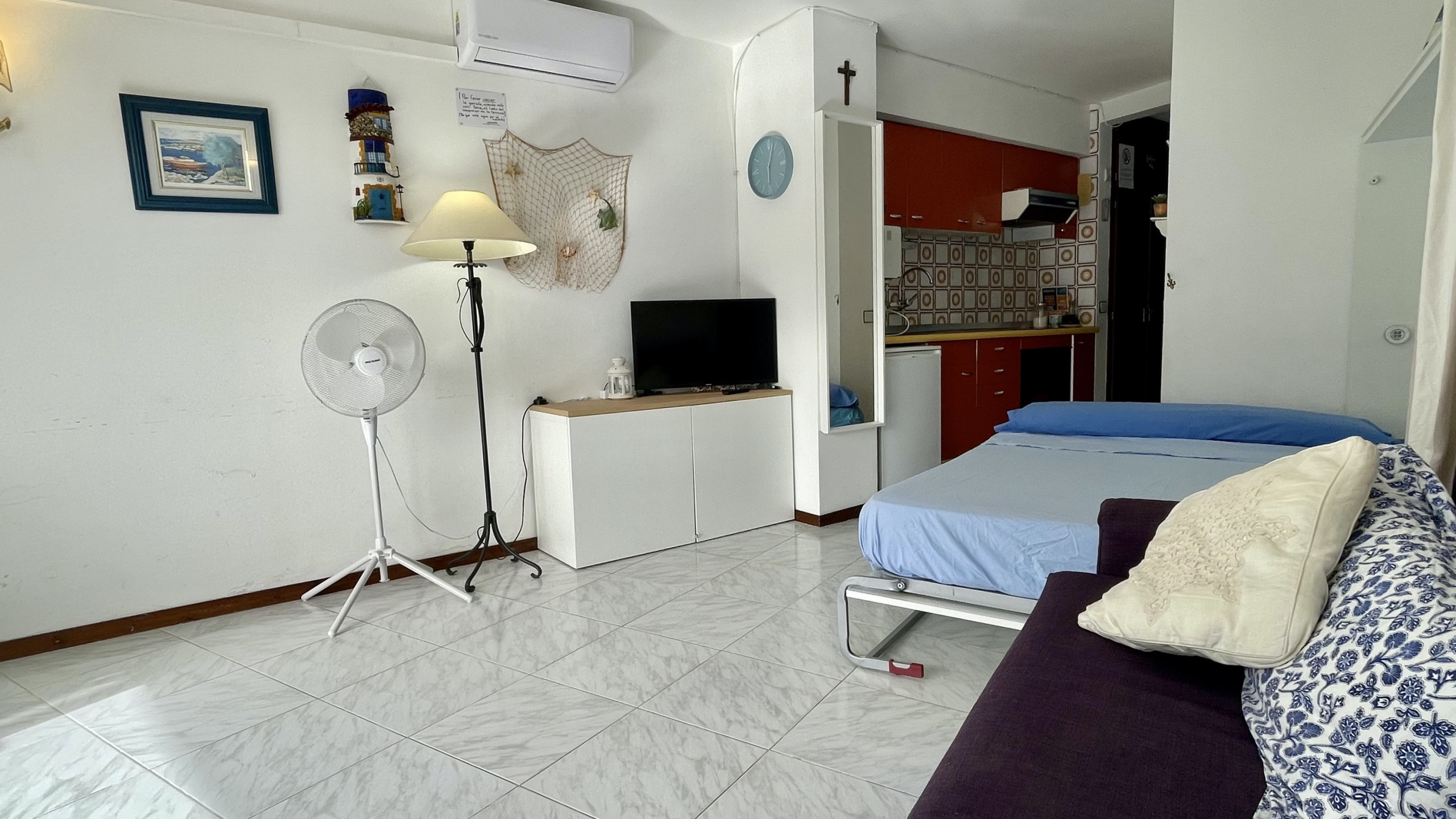 L'estudi és accessible amb ascensor, té una terrassa moblada per relaxar-se, piscina comunitària + infantil envoltada de gespa, TV i accés a Internet segons disponibilitat (10 €/dia).