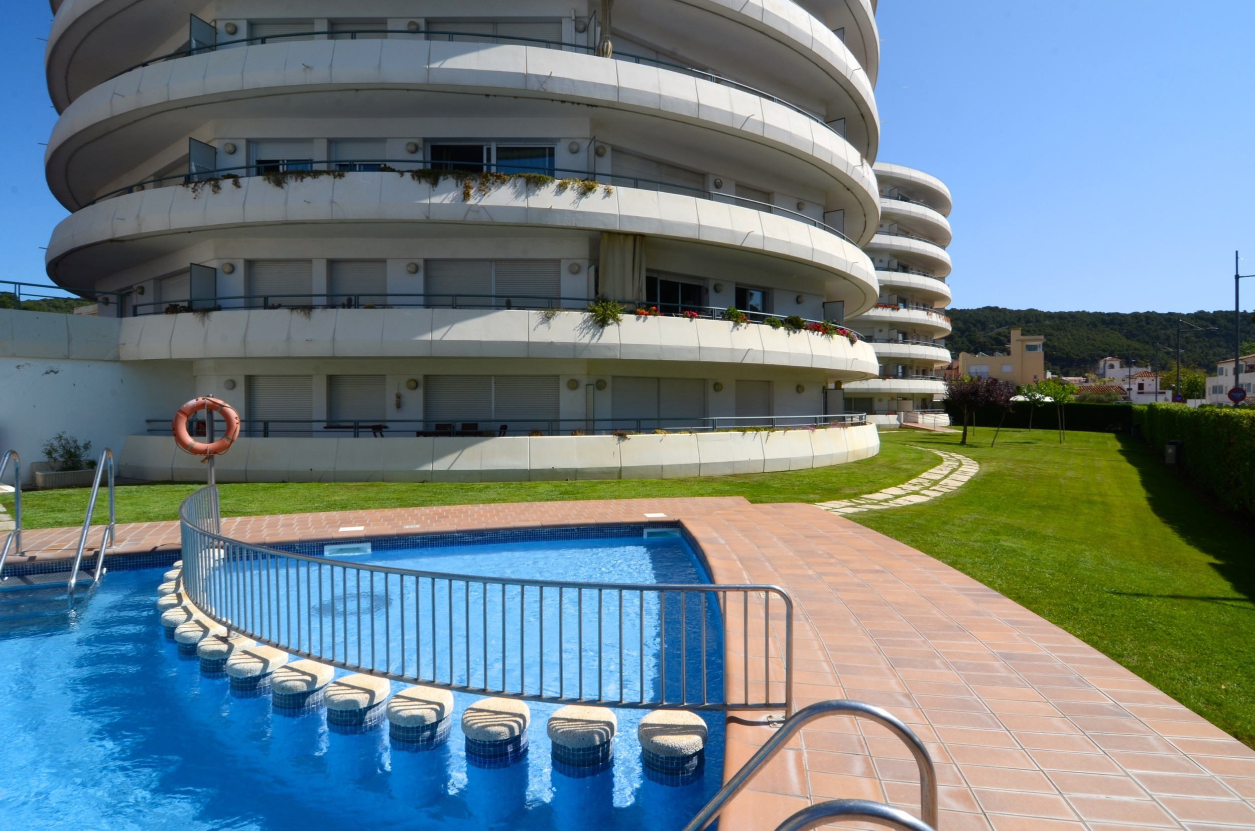 A la terrassa de l'edifici hi ha una piscina comunitària i una piscina infantil amb les millors vistes de la Costa Brava. El llençol és inclòs en el preu del lloguer. Si ho desitges, també pots afegir tovalloles en fer la reserva, amb un cost de 5 € per persona. Hi ha escales abans d'accedir a l'edifici.