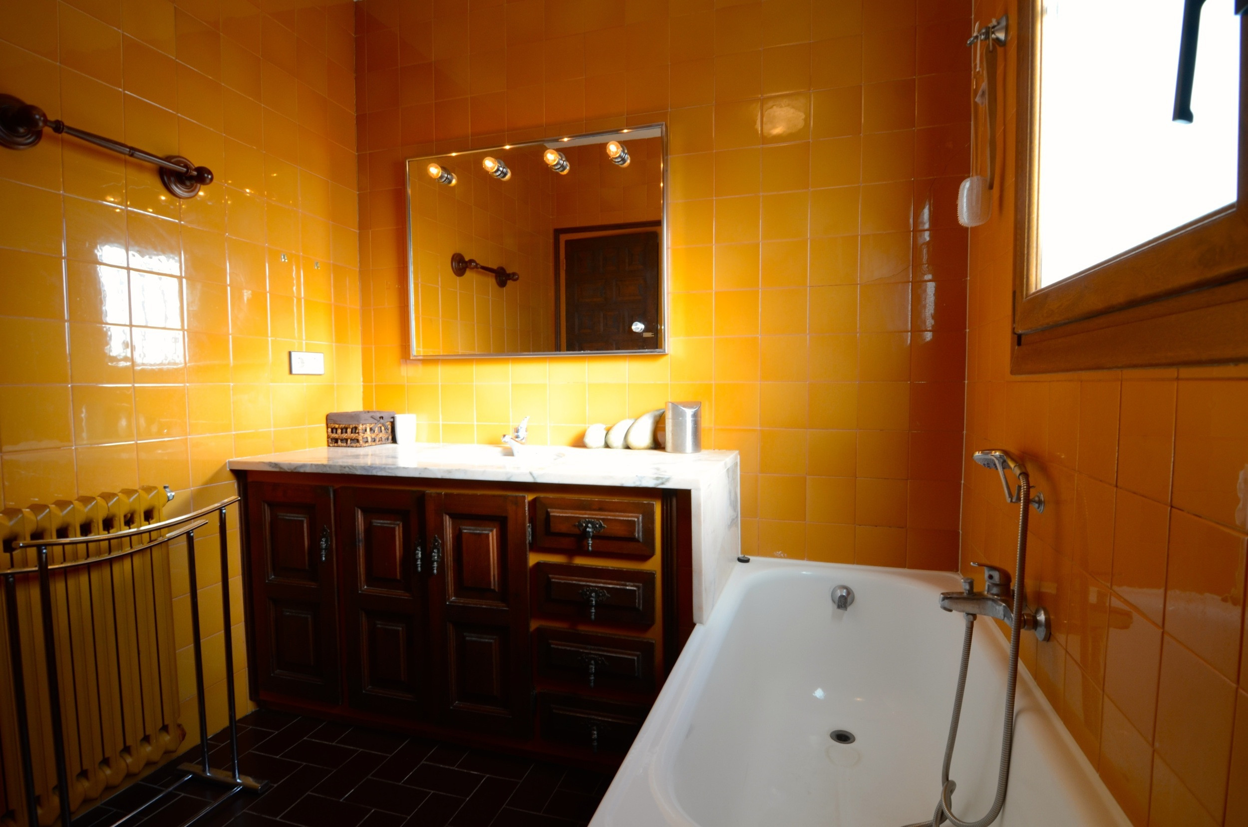L'interior està dividit entre la casa principal i tres annexos: un apartament independent, un estudi i una zona de bar i barbacoa interior per a àpats i festes.