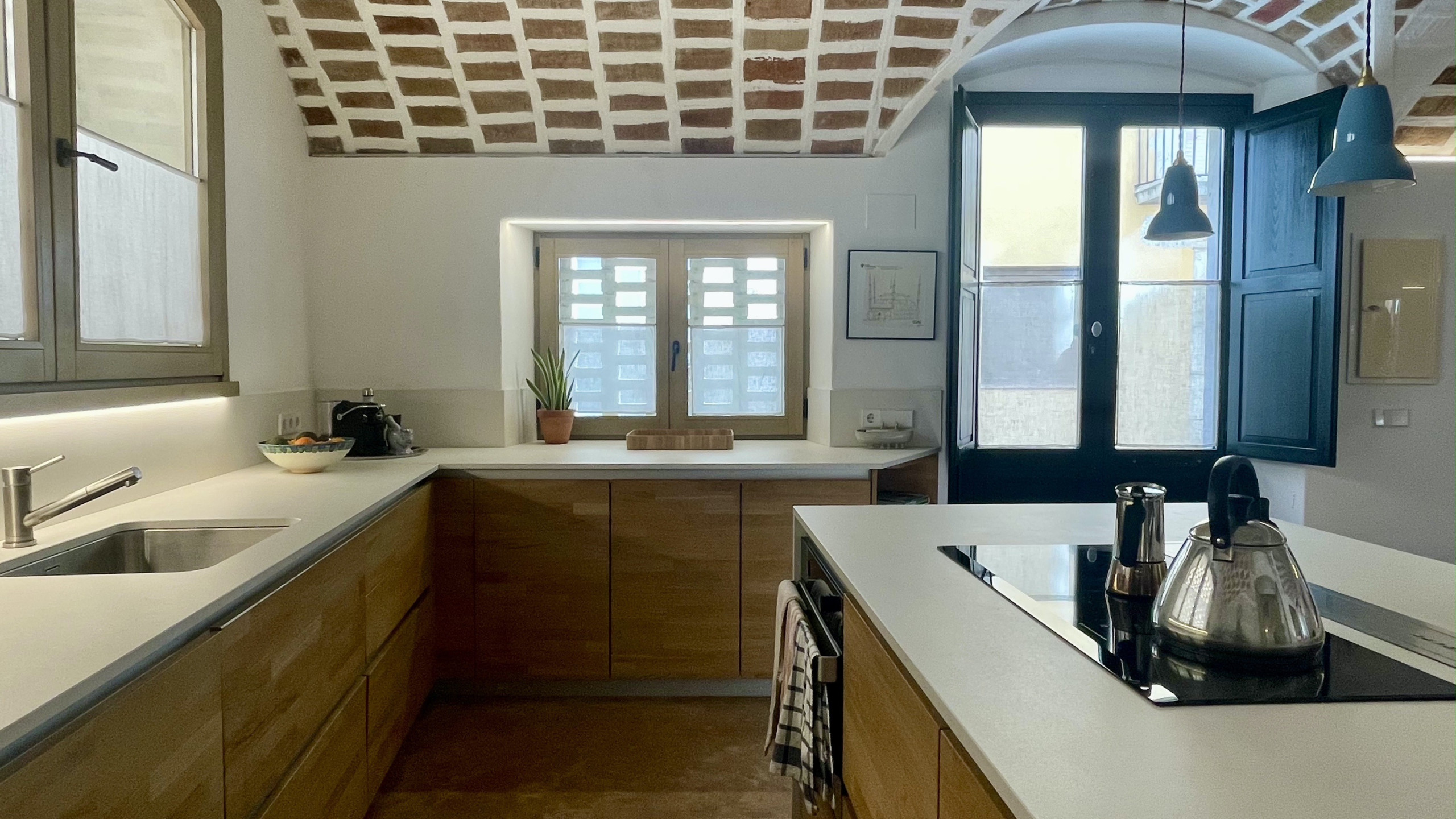 Rosa HausAltes Fischerhaus aus dem 19. Jahrhundert, das mit großem ästhetischem Sinn und nachhaltigen Materialien saniert wurde und dabei den ursprünglichen Charakter und Charme bewahrte. Es verfügt über 2 Schlafzimmer mit einer maximalen Kapazität von 5 Personen. Das Erdgeschoss hat einen großen Raum für Küche, Esszimmer und Wohnzimmer, einen kleinen Hof und ein vollständiges Badezimmer. Im Obergeschoss hat das Hauptschlafzimmer ein Doppelbett, während das zweite große Schlafzimmer eine Abtrennung für ein kleineres Doppelbett und ein Einzelbett hat. In diesem Stockwerk befindet sich ein weiteres vollständiges Badezimmer mit Dusche. Das Haus ist mit Fernseher, Internet (WLAN), Soundbar und Zentralheizung ausgestattet. Die moderne offene Küche ist vollständig ausgestattet mit Glaskeramikkochfeld, Mikrowellenherd, Kühlschrank, Gefrierschrank, Geschirrspüler, Küchenutensilien, Kaffeemaschine, Wasserkocher und Entsafter, Bügeleisen und Bügelbrett. Casa Rosa liegt in einem charmanten Viertel in der Altstadt von L'Escala, 250 m vom Strand entfernt, einem ehemaligen Fischerhafen, der jetzt von guten Restaurants, Bars und Cafés umgeben ist. Die Renovierung dieses Hauses war eine der Arbeiten, die von der Jury des Architekturpreises von Girona im Jahr 2019 ausgewählt wurde. HAUSTIERE UND JUGENDGRUPPEN SIND NICHT ERLAUBT.