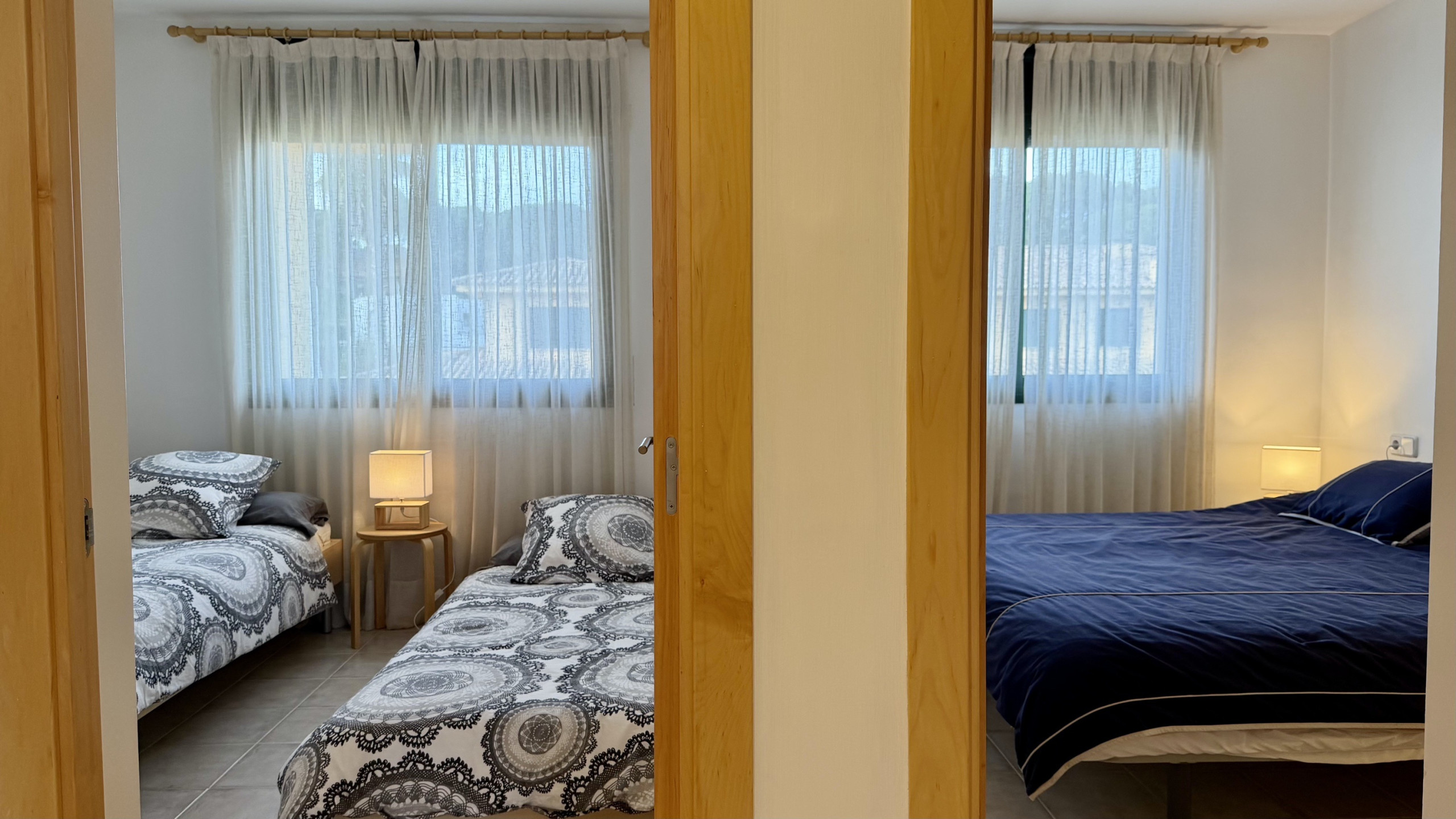 Das Haus verfügt über 3 gut verteilte Schlafzimmer: ein Hauptschlafzimmer mit Doppelbett und zwei zusätzliche Schlafzimmer mit Einzelbetten, die eine erholsame Nachtruhe für alle Familienmitglieder gewährleisten.