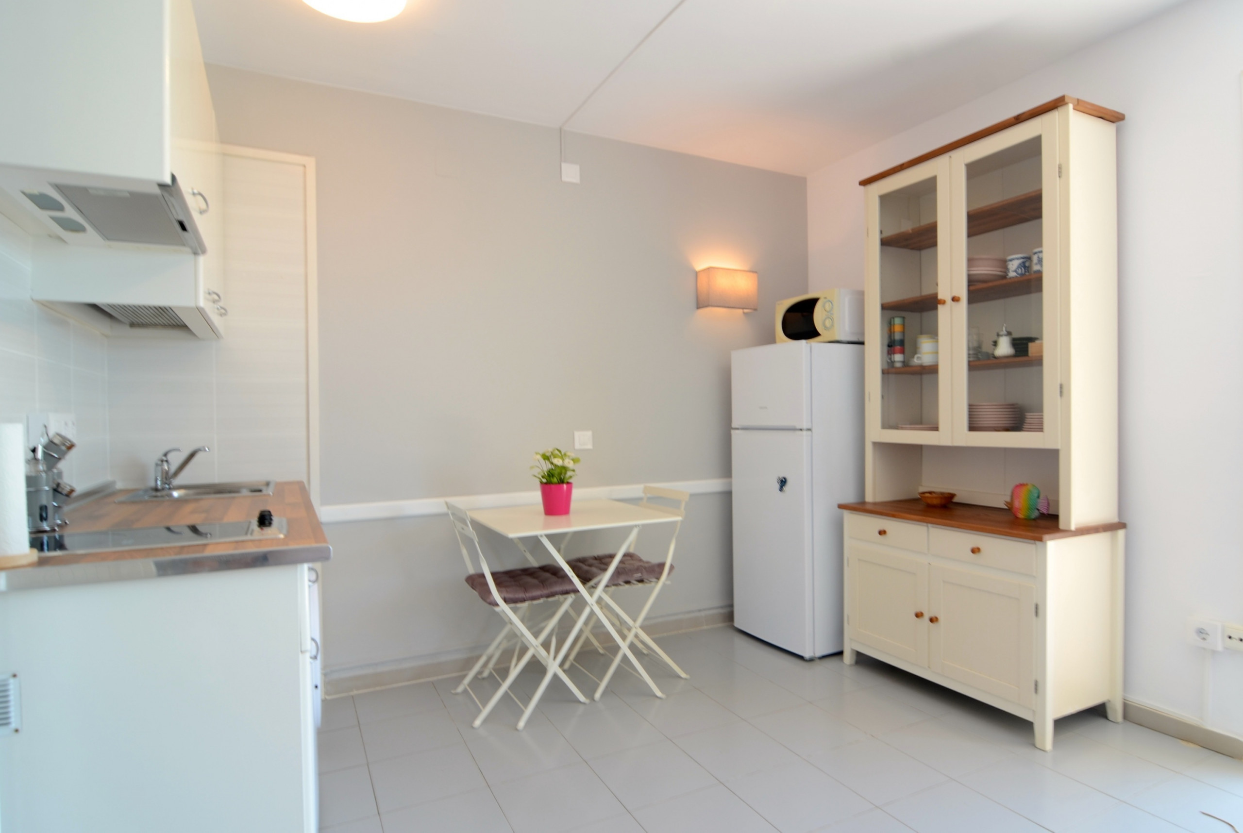 In der Anlage Rocamaura steht diese Ein-Zimmer-Wohnung für Ferienvermietung zur Verfügung. Sie verfügt über ein Doppelstockbett und ein Einzelbett und bietet Platz für bis zu 3 Personen. Die Wohnung umfasst ein Wohn-Esszimmer mit Sofa und Fernseher, eine kleine separate Küche und ein Badezimmer mit Dusche.