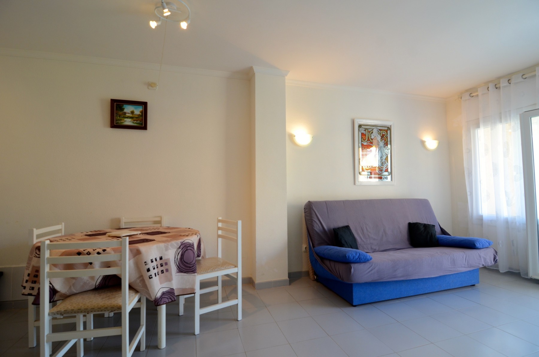 In der Anlage Rocamaura steht diese Ein-Zimmer-Wohnung für Ferienvermietung zur Verfügung. Sie verfügt über ein Doppelstockbett und ein Einzelbett und bietet Platz für bis zu 3 Personen. Die Wohnung umfasst ein Wohn-Esszimmer mit Sofa und Fernseher, eine kleine separate Küche und ein Badezimmer mit Dusche.