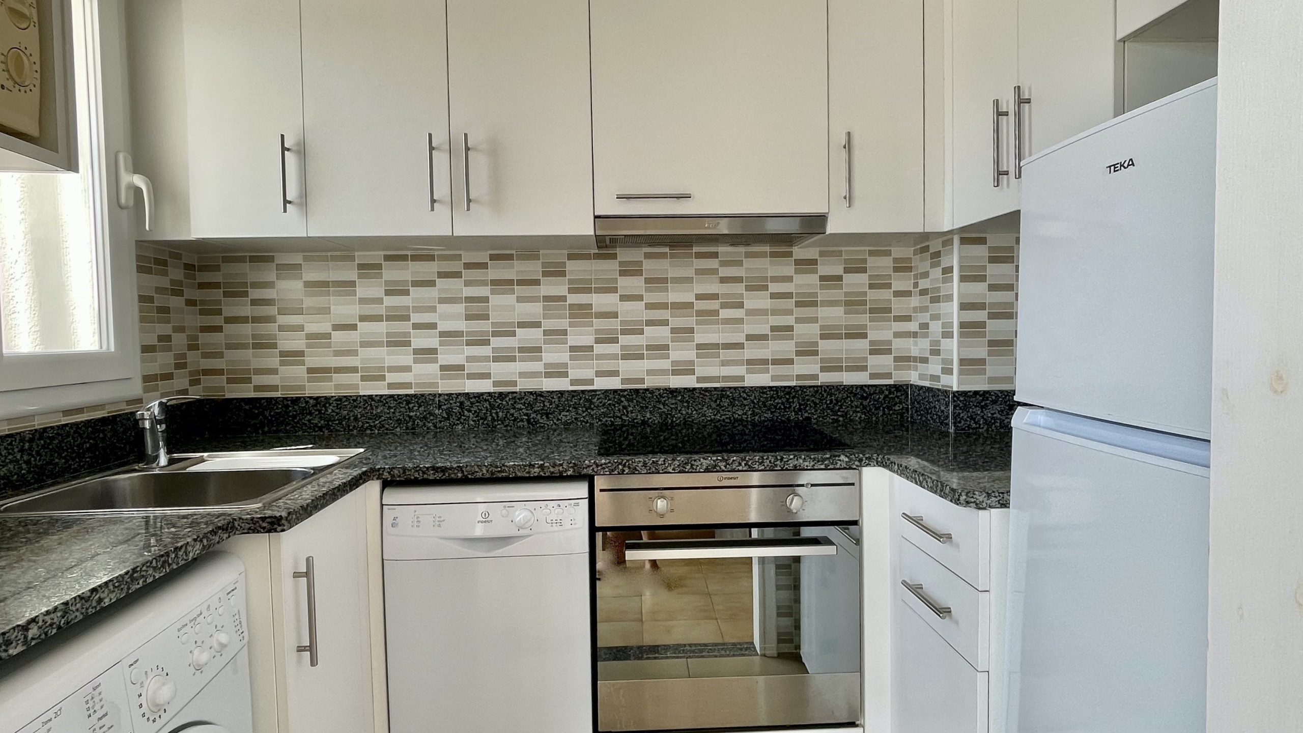Die separate Küche ist komplett ausgestattet mit Glaskeramik-Kochfeld, Kühlschrank, Mikrowelle, Backofen, Gefrierschrank, Waschmaschine, Geschirrspüler und allen notwendigen Küchenutensilien, einschließlich Geschirr, Besteck, Kaffeemaschine, Toaster und Saftpresse.