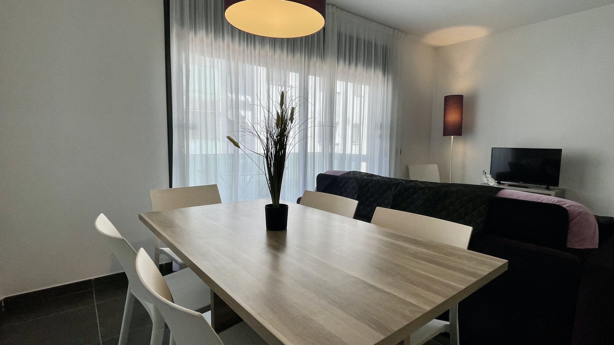 Die Wohnung verfügt über moderne Annehmlichkeiten wie einen Aufzug, eine Waschmaschine, ein Bügeleisen, eine Wärmepumpenheizung und eine Klimaanlage. Gäste können auch den Gemeinschaftspool und praktische überdachte Parkplätze im selben Gebäude nutzen. Zur Unterhaltung steht ein Fernseher zur Verfügung.
