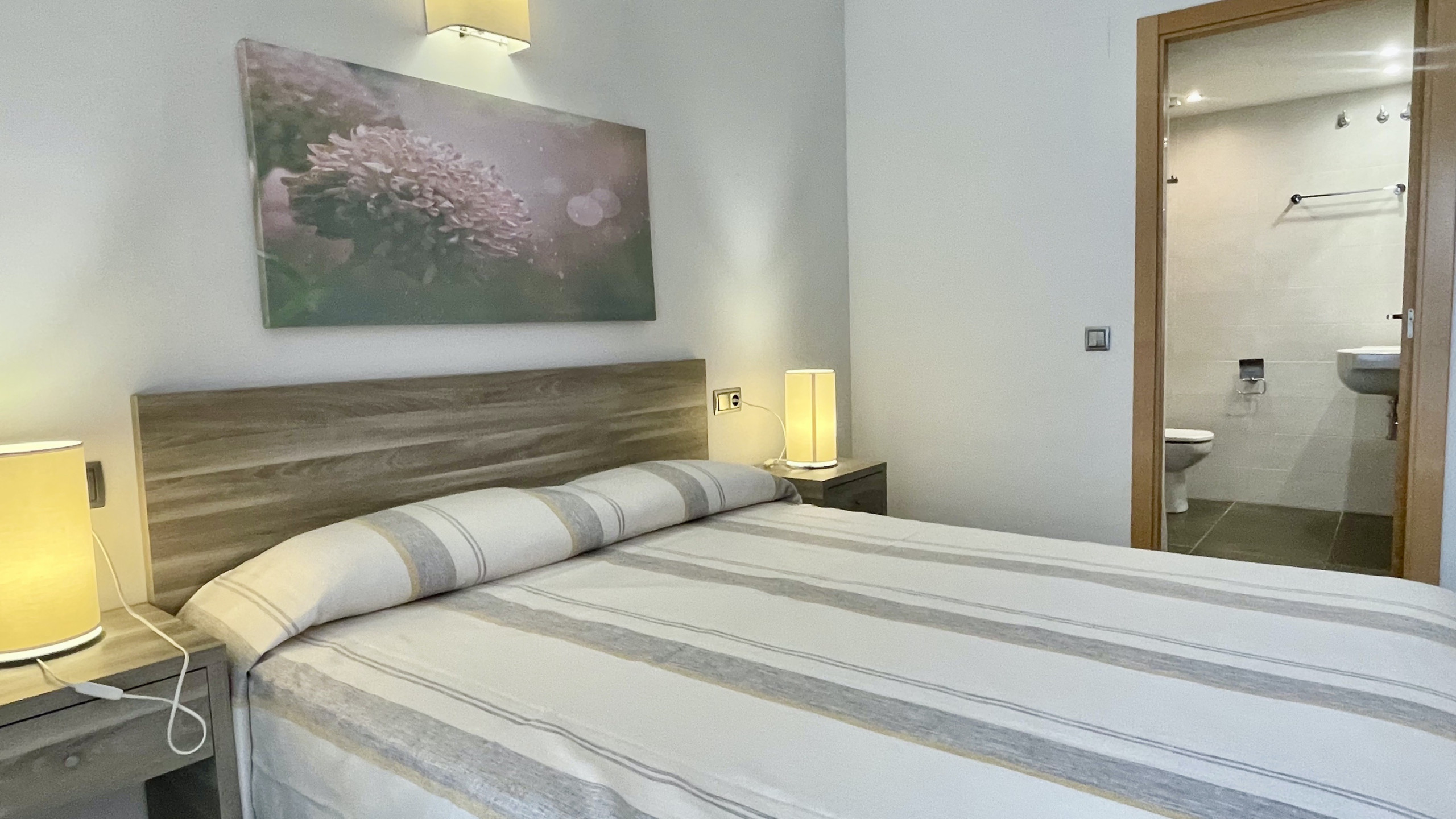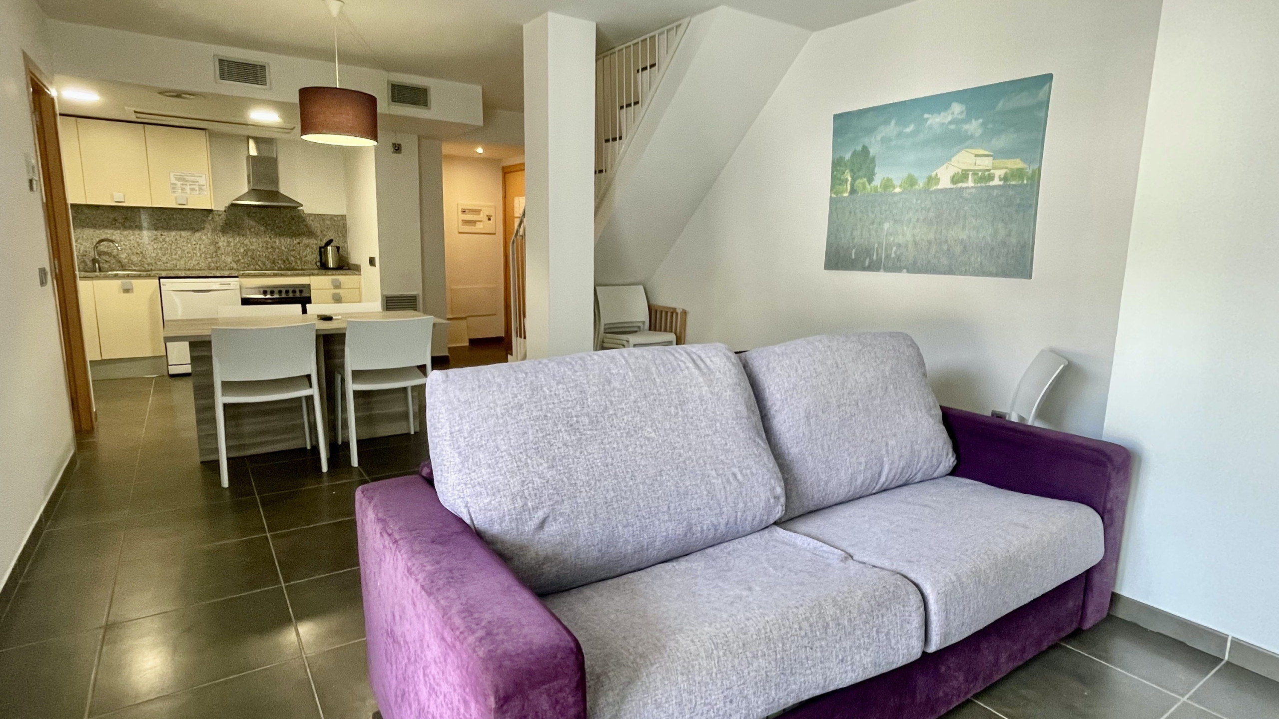 Es verfügt über zwei Schlafzimmer, eines mit einem Doppelbett und das andere mit Etagenbetten, ein Badezimmer, eine zum Wohnzimmer offene Küche und eine Terrasse. Gemeinschaftspool und Parkplatz, unerlässlich, um Ihr Auto bequem zu parken.