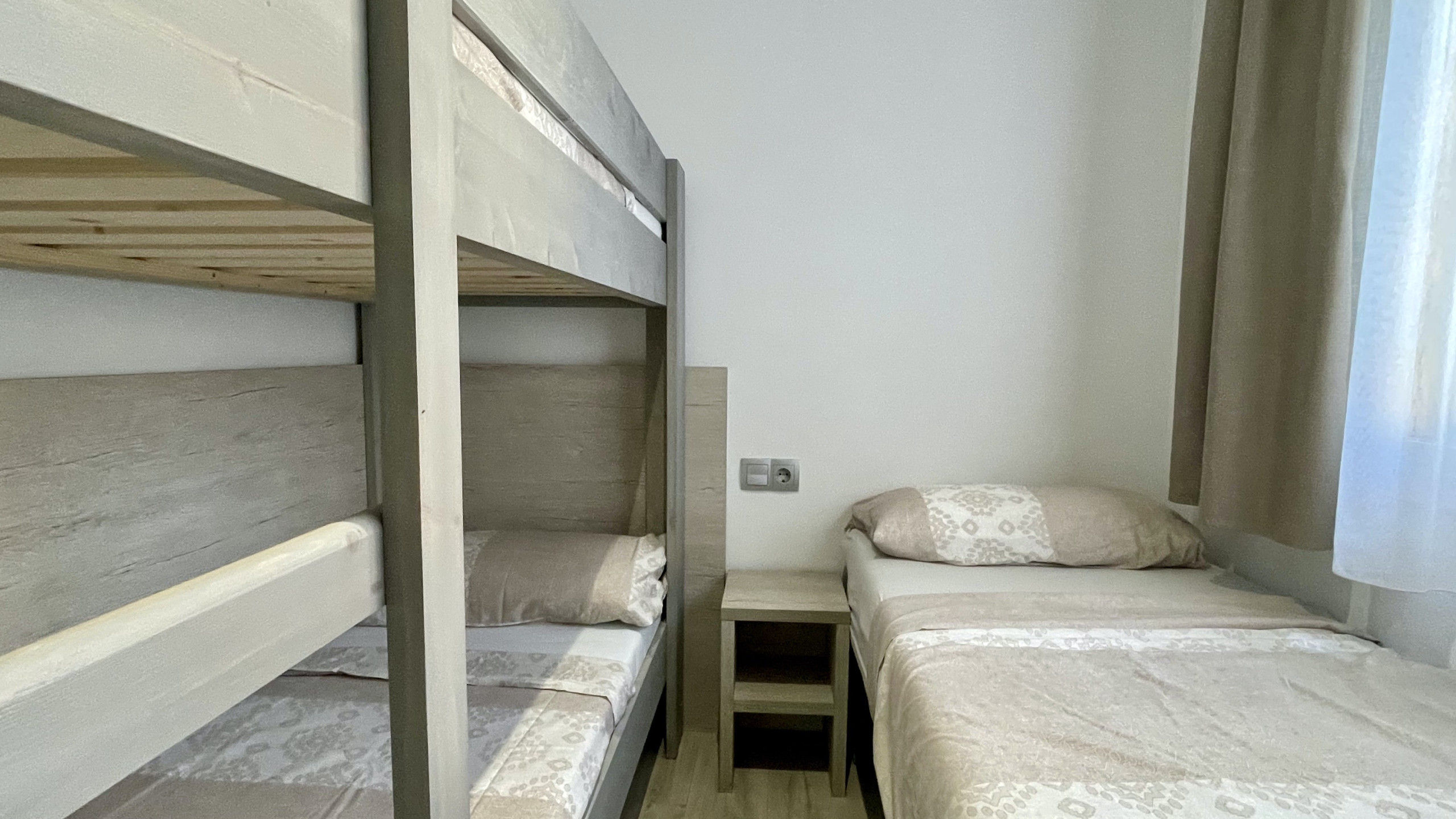 Diese helle 65 Quadratmeter große Wohnung bietet bequeme Unterkunft für bis zu 6 Personen, ideal für Familien, die einen entspannenden Ausflug suchen. Sie verfügt über 2 Schlafzimmer, die mit 6 Betten ausgestattet sind: 1 Doppelbett, 1 Etagenbett, 1 Einzelbett und 1 Doppelschlafsofa, die eine erholsame Nachtruhe für alle gewährleisten.