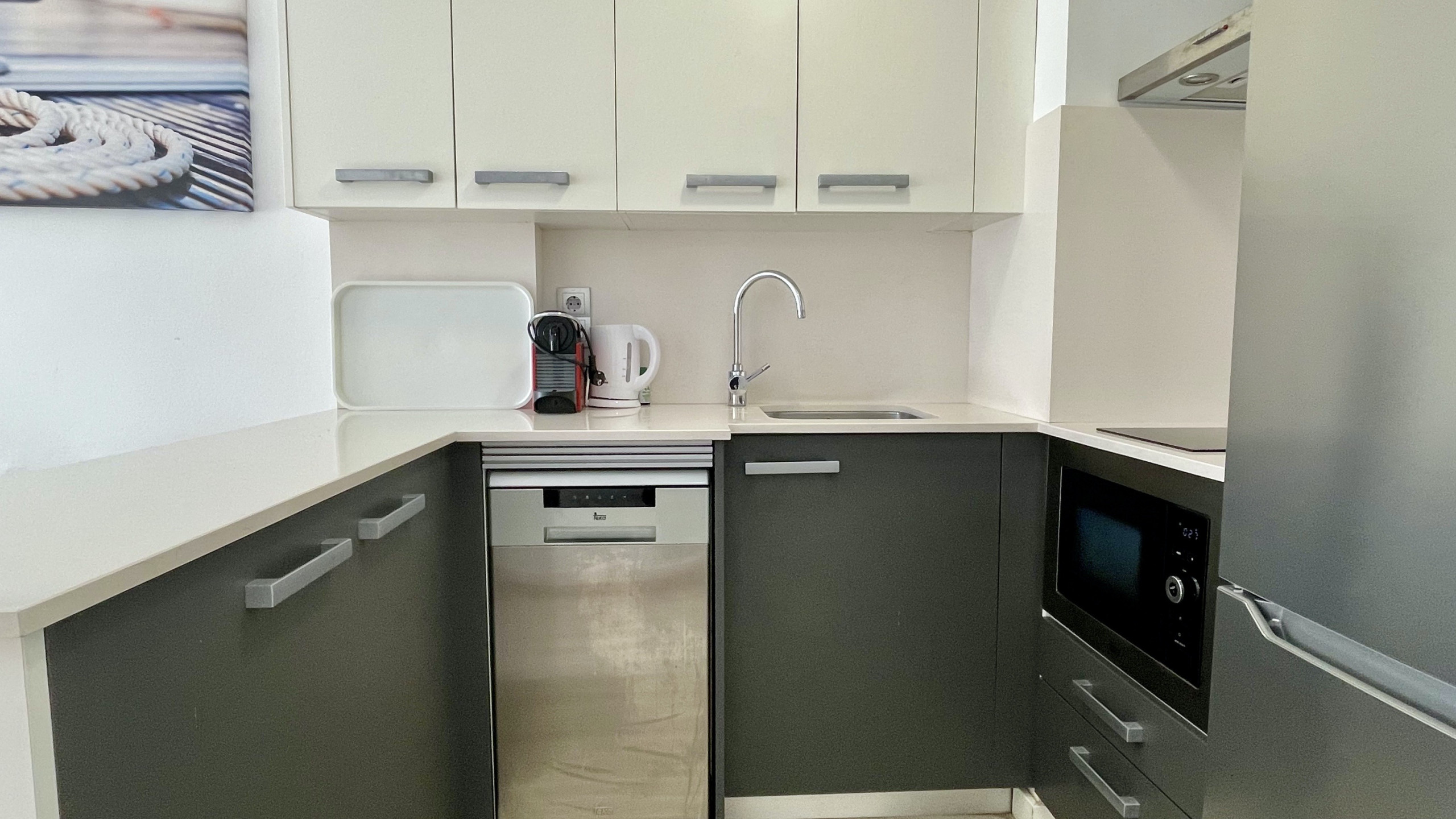 Die amerikanische Küche ist vollständig ausgestattet und einer der Stärken der Wohnung. Sie verfügt über moderne Haushaltsgeräte wie Kühlschrank, Gefrierschrank, Geschirrspüler, Mikrowelle, Toaster und Kaffeemaschine. Darüber hinaus sind alle notwendigen Küchenutensilien vorhanden, um köstliche Mahlzeiten für die Familie zuzubereiten.
