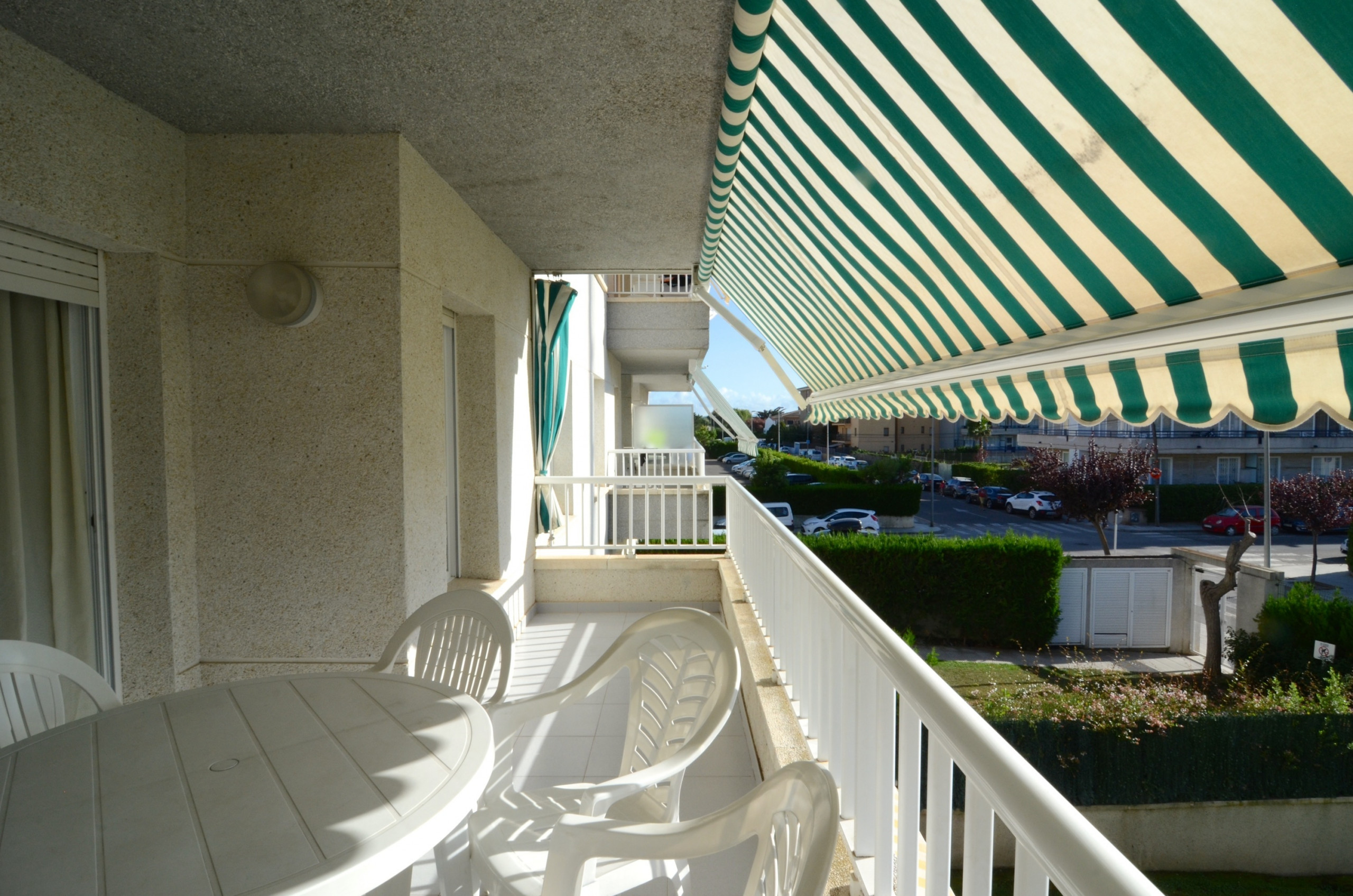 The apartment enjoys a lovely street view from its 55 m² and is situated in a family-friendly residential complex. With an elevator for added convenience, the furnished terrace is perfect for outdoor dining. It also features a communal pool and a children's pool, providing options for water fun.