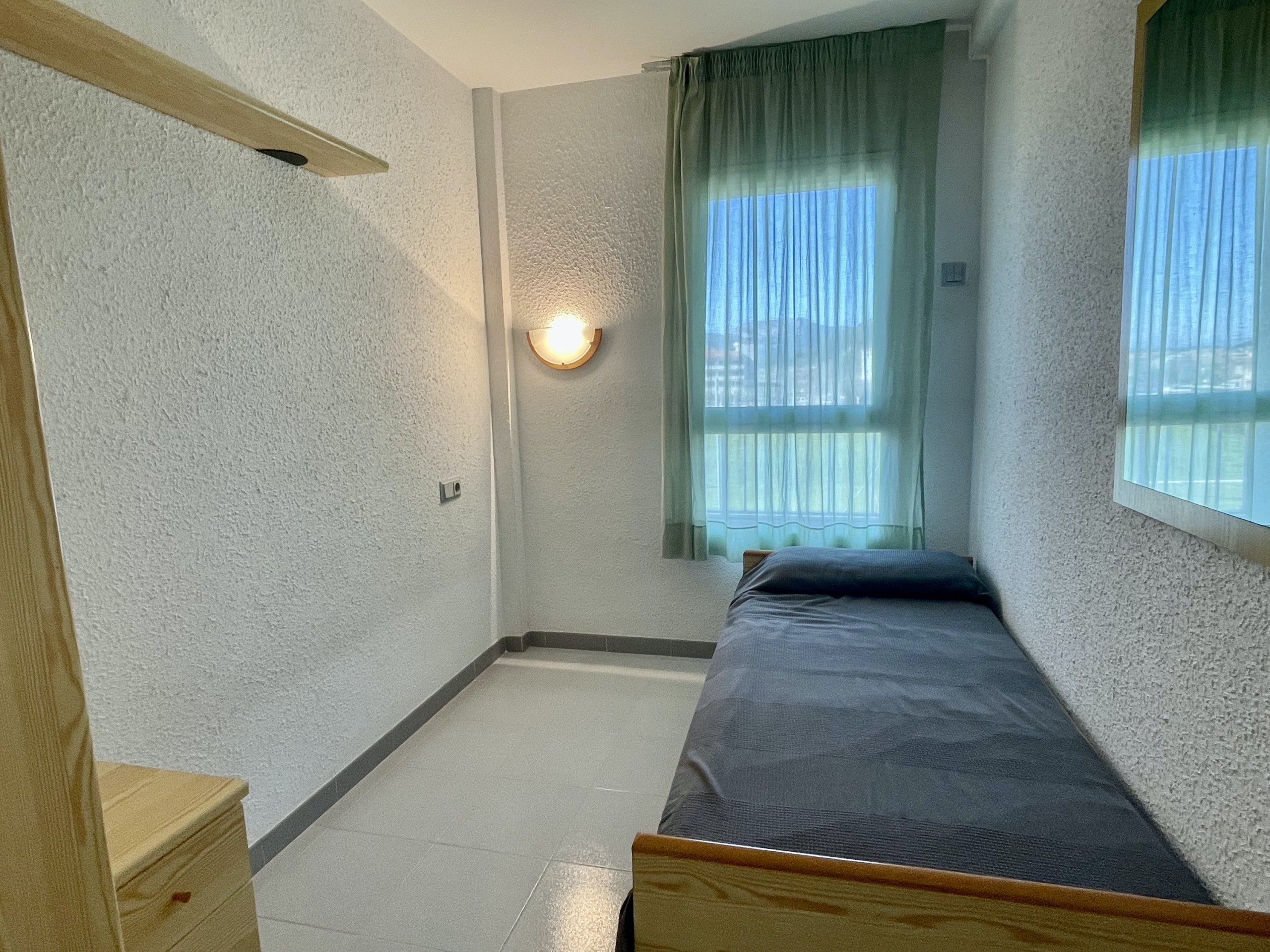 In der Anlage Rocamaura steht diese Ein-Zimmer-Wohnung für Ferienvermietung zur Verfügung. Sie verfügt über ein Doppelstockbett und ein Einzelbett und bietet Platz für bis zu 3 Personen. Die Wohnung umfasst ein Wohn-Esszimmer mit Sofa und Fernseher, eine kleine separate Küche und ein Badezimmer mit Dusche.