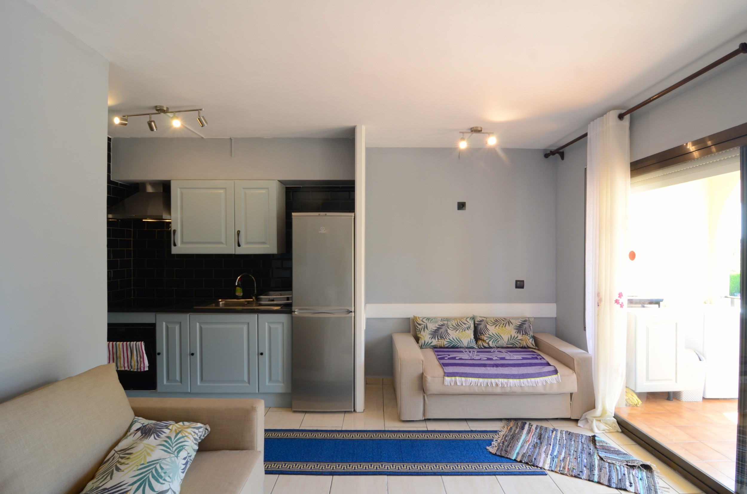 Das Apartment verfügt über alle Annehmlichkeiten, die Sie benötigen. Das Wohnzimmer ist mit Klimaanlage ausgestattet, um Ihnen das ganze Jahr über Komfort zu bieten. Die amerikanische Küche, ausgestattet mit einem Kochfeld, Kühlschrank, Mikrowelle, Backofen, Gefrierschrank, Waschmaschine, Kaffeemaschine, Toaster und Saftpresse, ermöglicht es Ihnen, Ihre Lieblingsgerichte leicht zuzubereiten.