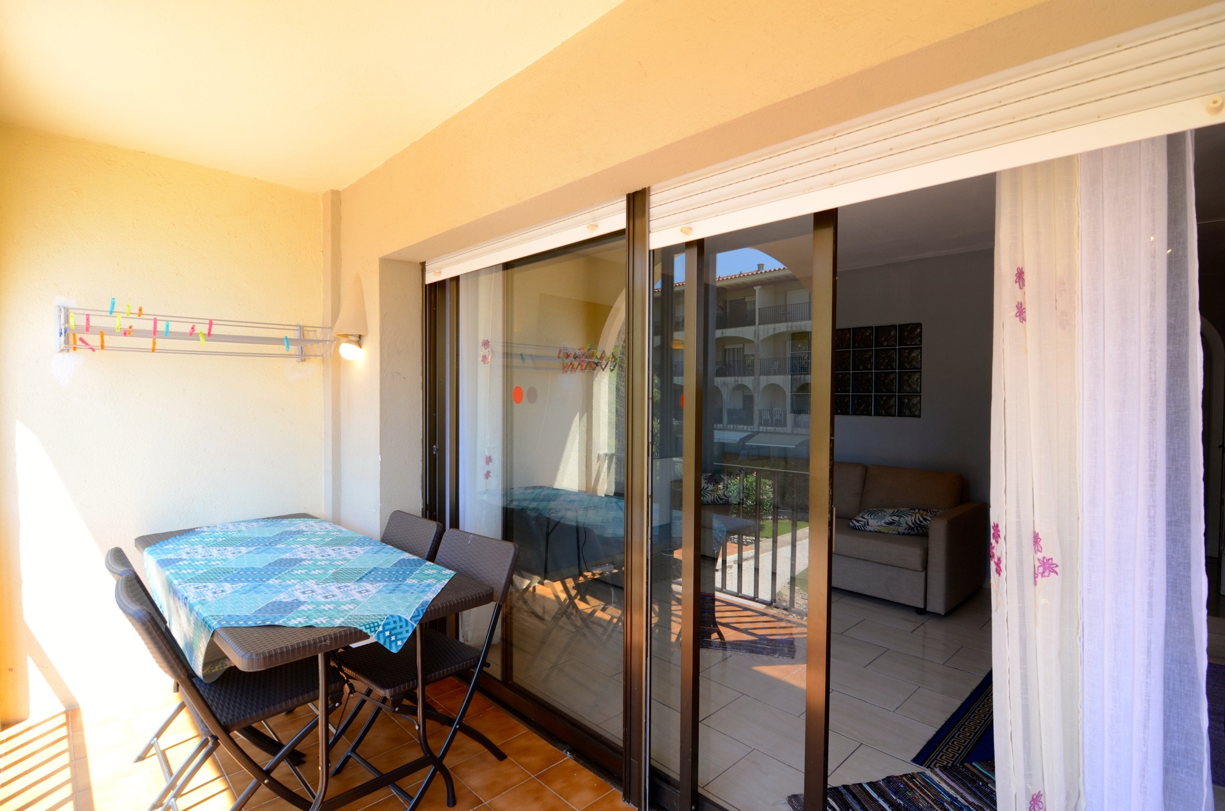 Die Wohnung verfügt über eine große Terrasse mit einem unschlagbaren Blick auf die gesamte Anlage Rocamaura, mit dem Pool zu Ihren Füßen und den Medes-Inseln im Hintergrund.