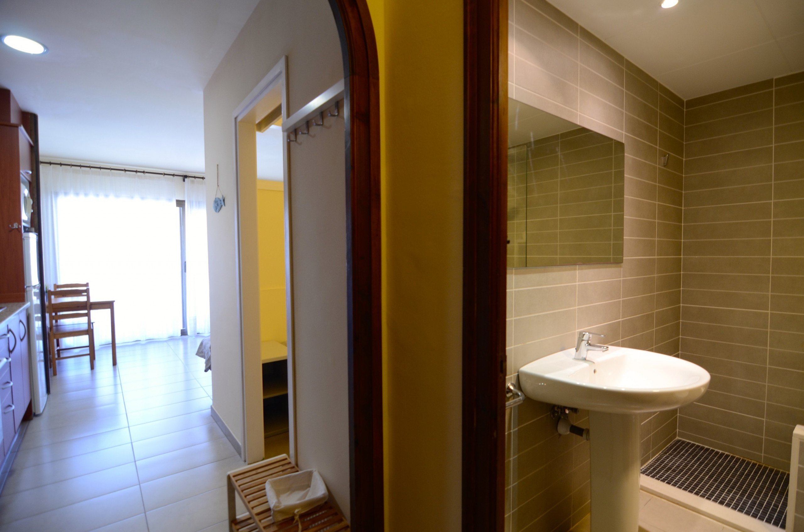 In der Anlage Rocamaura steht diese Ein-Zimmer-Wohnung für Ferienvermietung zur Verfügung. Sie verfügt über ein Doppelstockbett und ein Einzelbett und bietet Platz für bis zu 3 Personen. Die Wohnung umfasst ein Wohn-Esszimmer mit Sofa und Fernseher, eine kleine separate Küche und ein Badezimmer mit Dusche.