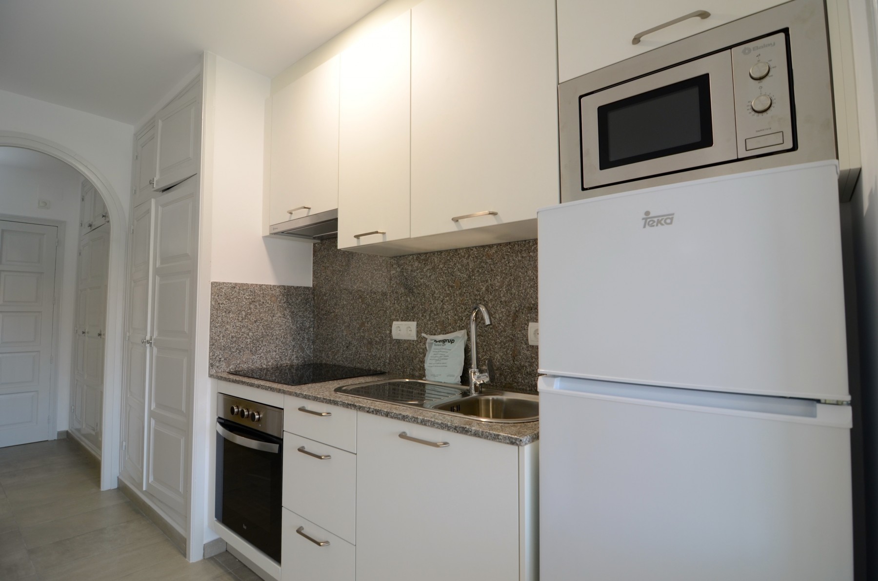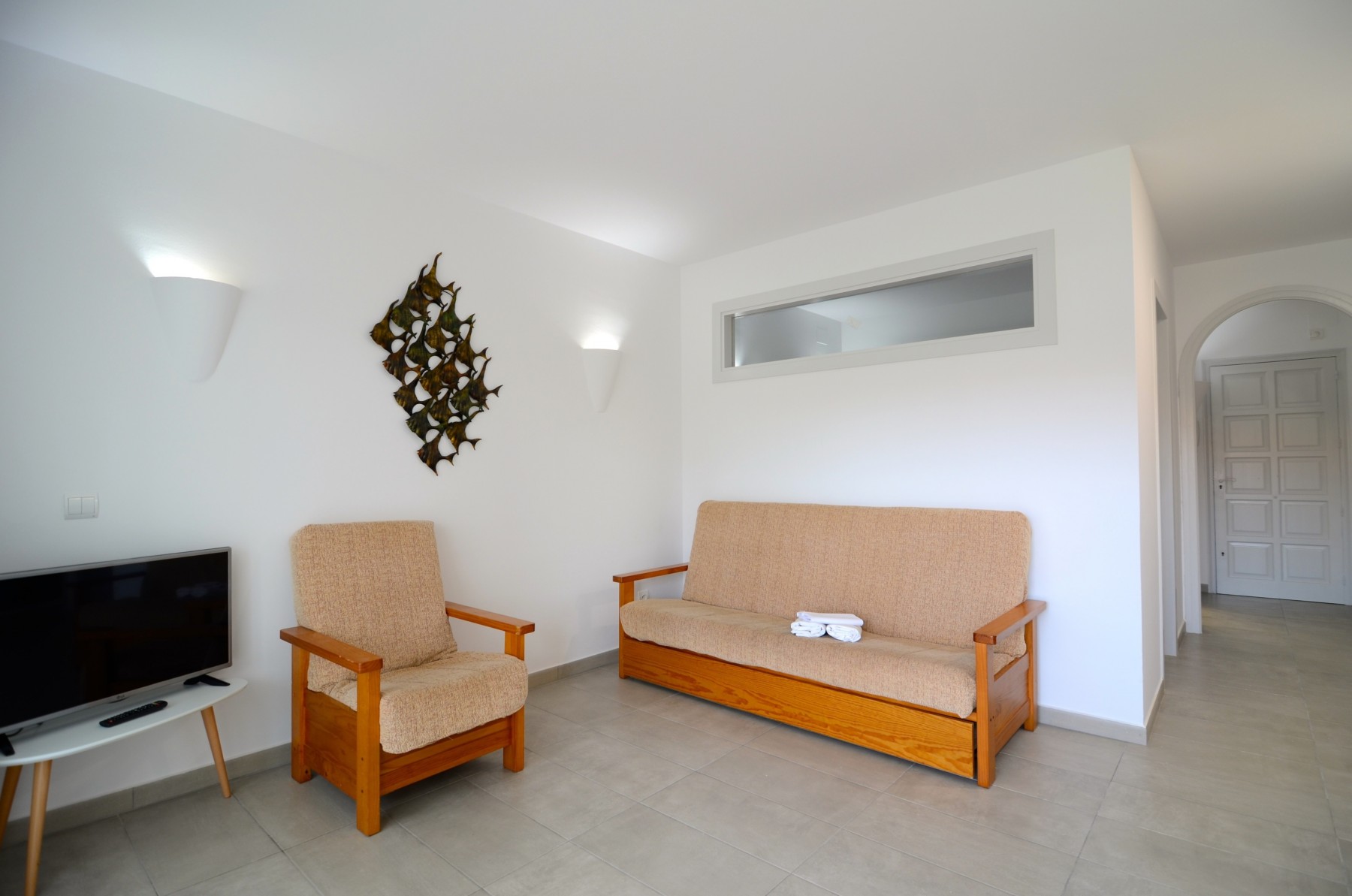 In der Anlage Rocamaura steht diese Ein-Zimmer-Wohnung für Ferienvermietung zur Verfügung. Sie verfügt über ein Doppelstockbett und ein Einzelbett und bietet Platz für bis zu 3 Personen. Die Wohnung umfasst ein Wohn-Esszimmer mit Sofa und Fernseher, eine kleine separate Küche und ein Badezimmer mit Dusche.