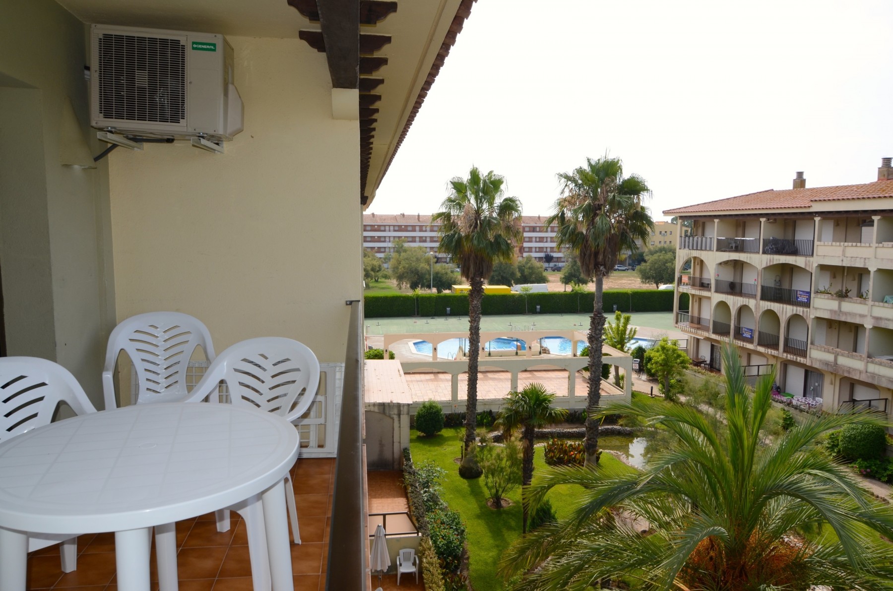 Die Wohnung verfügt über eine große Terrasse mit einem unschlagbaren Blick auf die gesamte Anlage Rocamaura, mit dem Pool zu Ihren Füßen und den Medes-Inseln im Hintergrund.