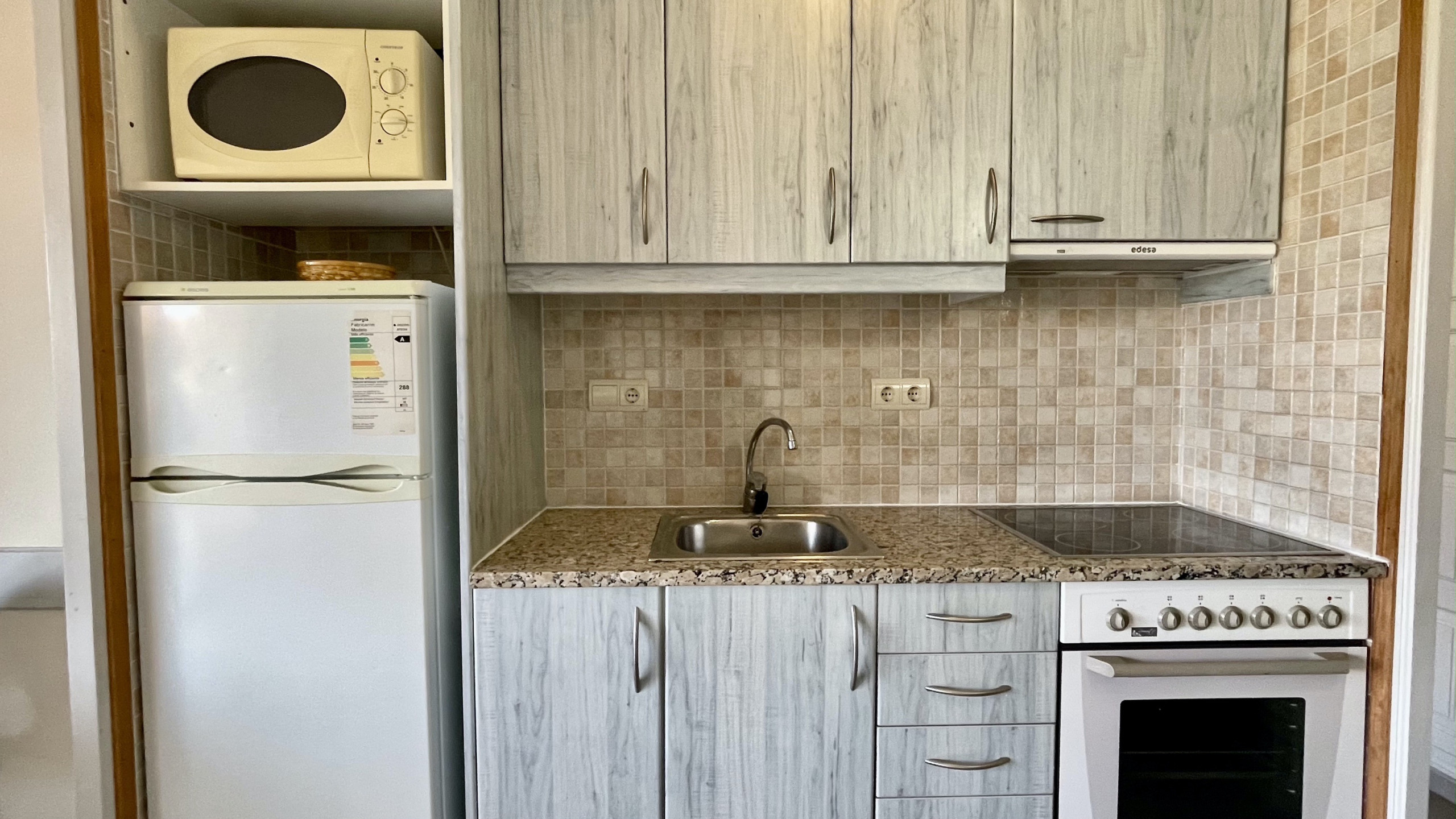 Diese gemütliche Wohnung erstreckt sich über zwei Ebenen, um Ihnen all den Platz und Komfort zu bieten, den Sie benötigen. Im Erdgeschoss finden Sie eine moderne offene Küche, ein helles Wohn- und Esszimmer und eine entspannende Terrasse, auf der Sie das mediterrane Klima genießen können. Darüber hinaus verfügt sie über ein gemütliches Schlafzimmer mit Doppelbett und ein voll ausgestattetes Badezimmer.