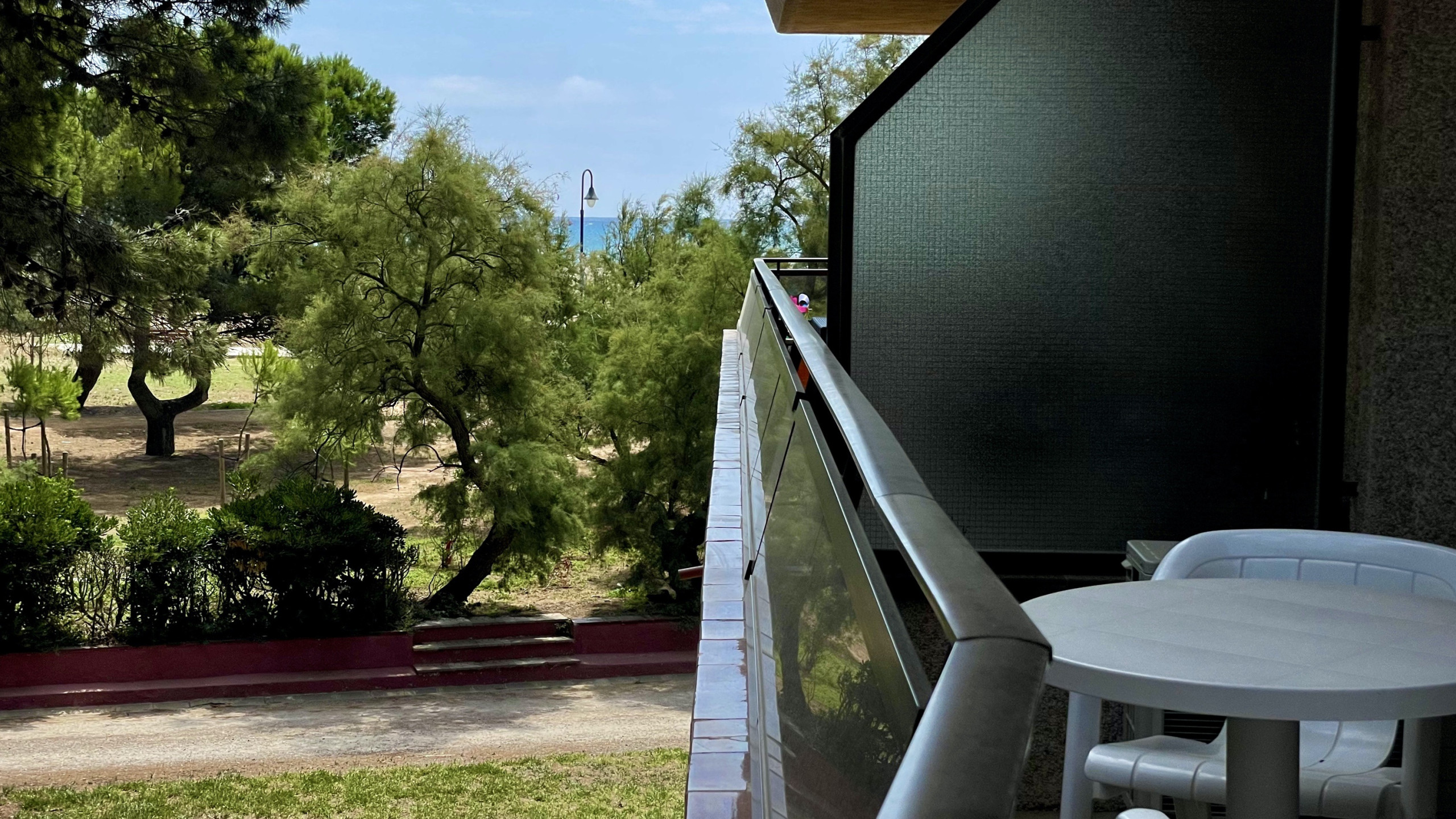 Die Lage ist unschlagbar: 50 Meter vom Sandstrand entfernt, mit nahegelegenem Supermarkt, Restaurants in 200 Metern Entfernung und Cafés nur 100 Meter entfernt. Es verfügt über einen privaten Außenparkplatz für ein Fahrzeug, was die Mobilität während des Urlaubs erleichtert.