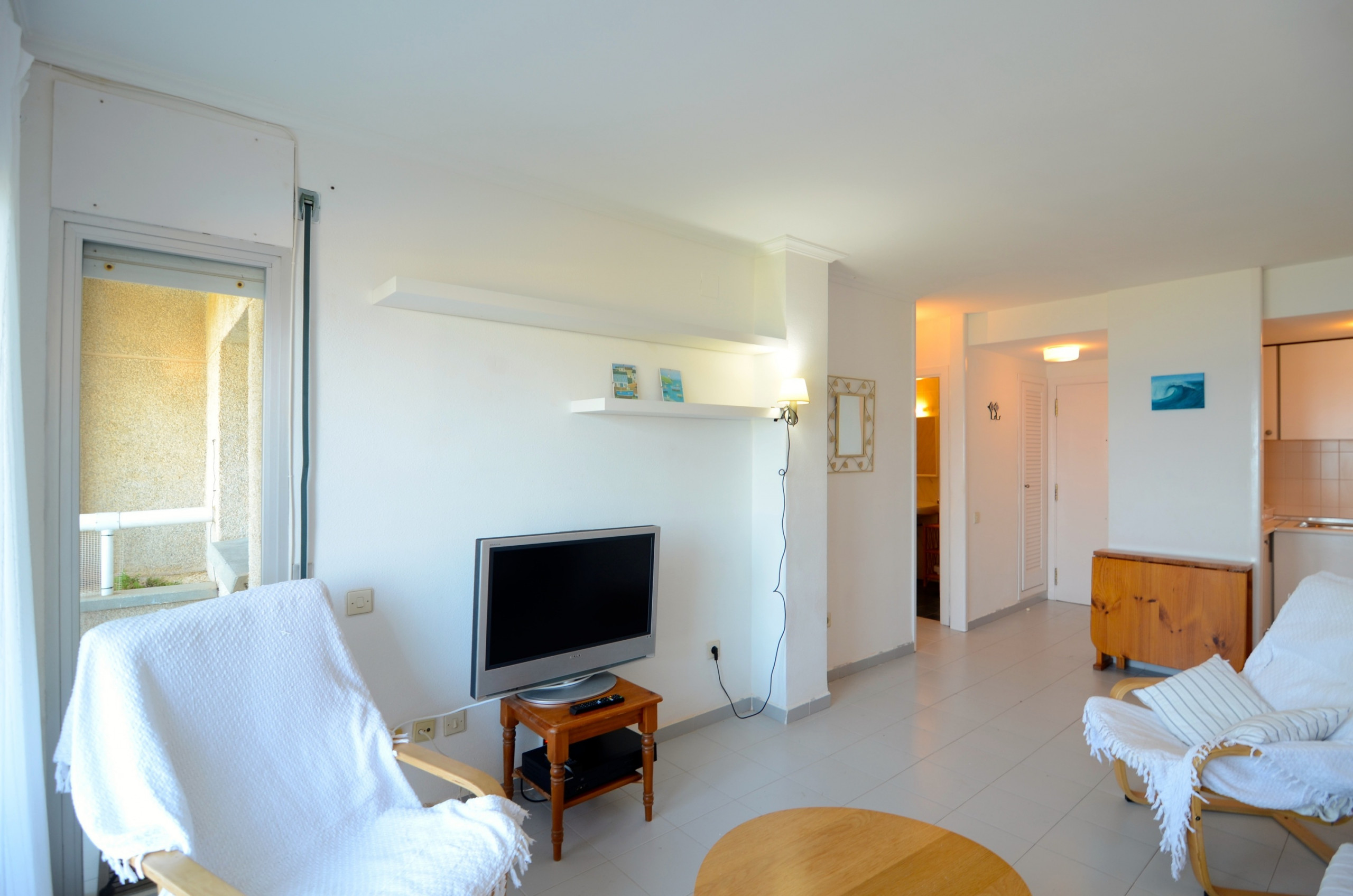 In der Anlage Rocamaura steht diese Ein-Zimmer-Wohnung für Ferienvermietung zur Verfügung. Sie verfügt über ein Doppelstockbett und ein Einzelbett und bietet Platz für bis zu 3 Personen. Die Wohnung umfasst ein Wohn-Esszimmer mit Sofa und Fernseher, eine kleine separate Küche und ein Badezimmer mit Dusche.