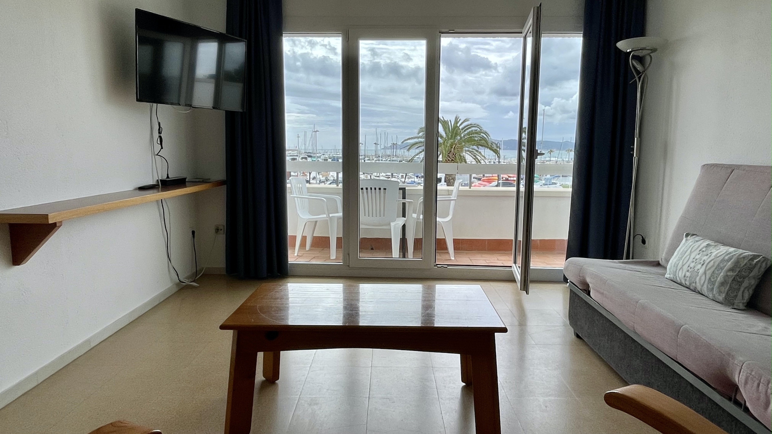 Genießen Sie den gemütlichen und geräumigen Wohnbereich mit 3 Schlafzimmern und 75 m² zum Entspannen. Erwachen Sie mit malerischem Blick auf das Meer und den Yachthafen und schaffen Sie eine malerische Kulisse für Ihren Küstenurlaub.