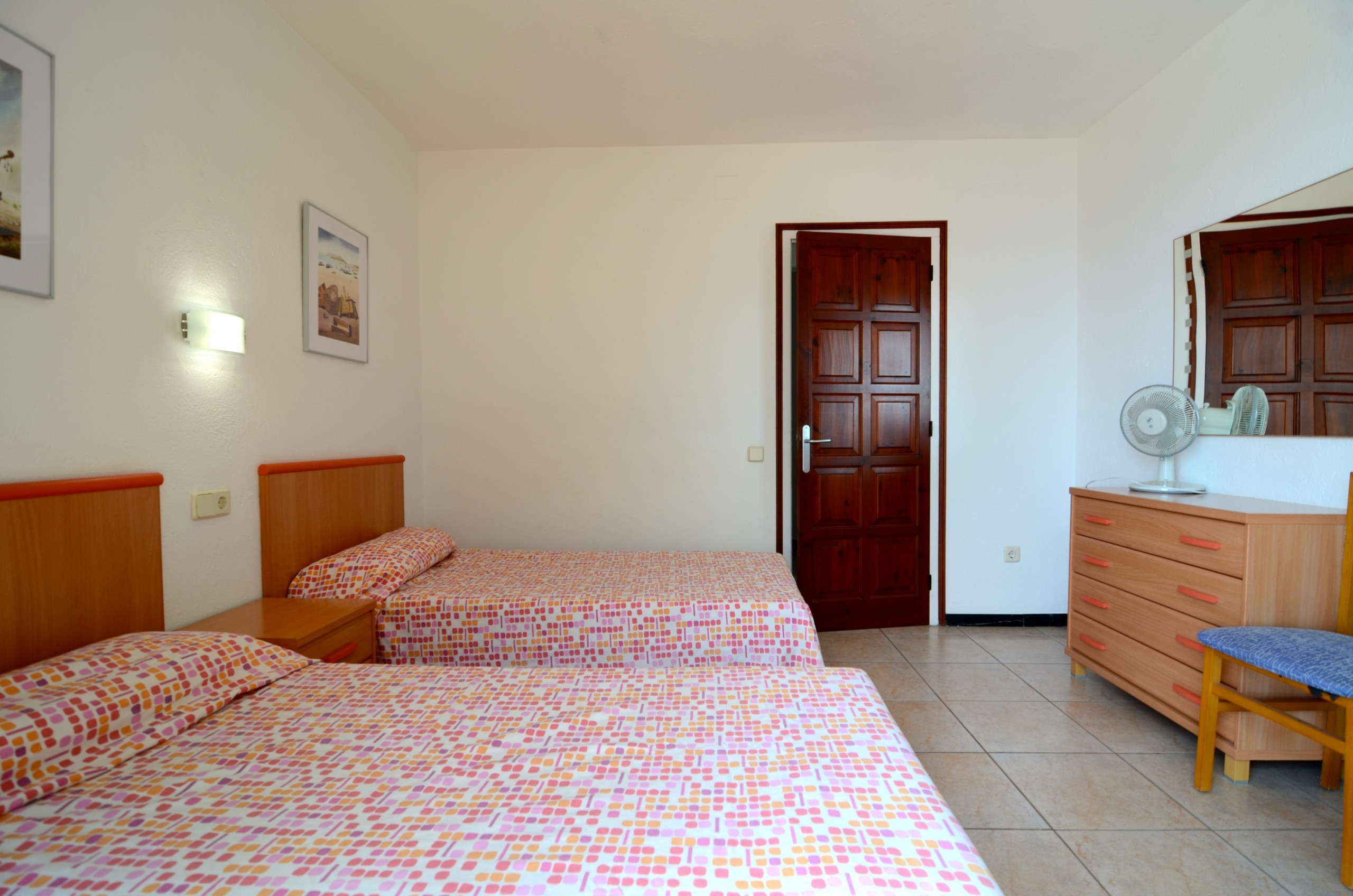 In der Anlage Rocamaura steht diese Ein-Zimmer-Wohnung für Ferienvermietung zur Verfügung. Sie verfügt über ein Doppelstockbett und ein Einzelbett und bietet Platz für bis zu 3 Personen. Die Wohnung umfasst ein Wohn-Esszimmer mit Sofa und Fernseher, eine kleine separate Küche und ein Badezimmer mit Dusche.