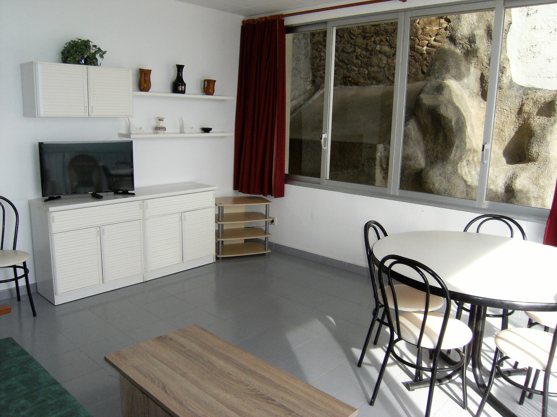 In der Anlage Rocamaura steht diese Ein-Zimmer-Wohnung für Ferienvermietung zur Verfügung. Sie verfügt über ein Doppelstockbett und ein Einzelbett und bietet Platz für bis zu 3 Personen. Die Wohnung umfasst ein Wohn-Esszimmer mit Sofa und Fernseher, eine kleine separate Küche und ein Badezimmer mit Dusche.