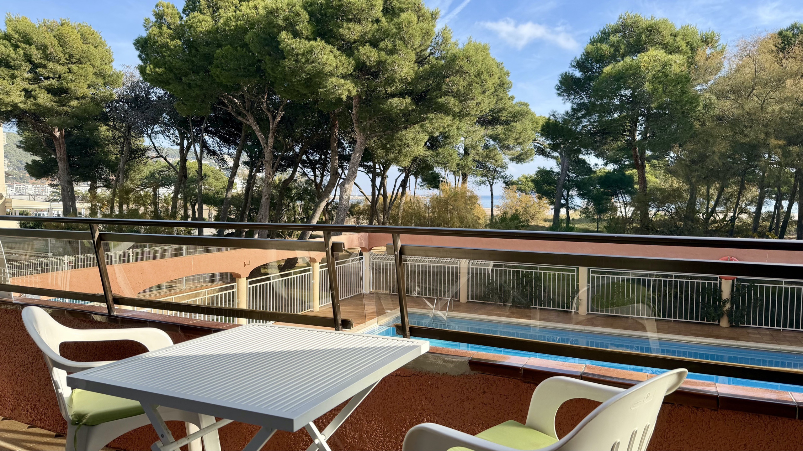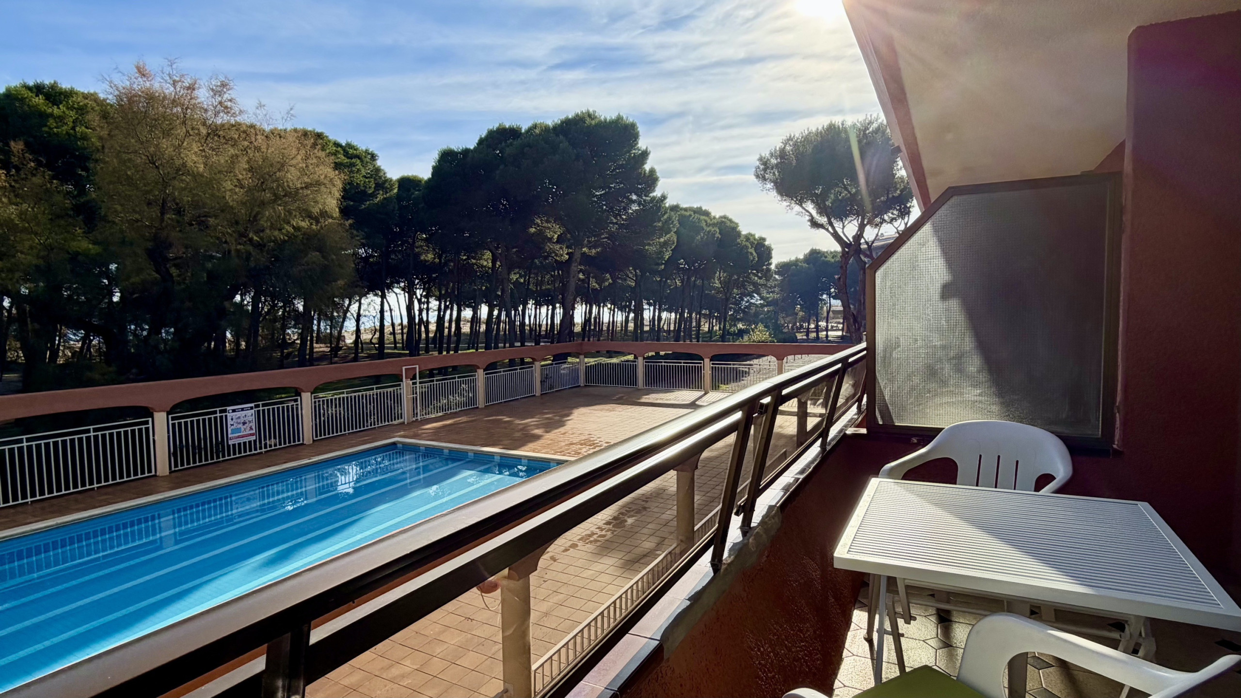 Ein-Zimmer-Wohnung mit spektakulärem Blick auf den Pool.