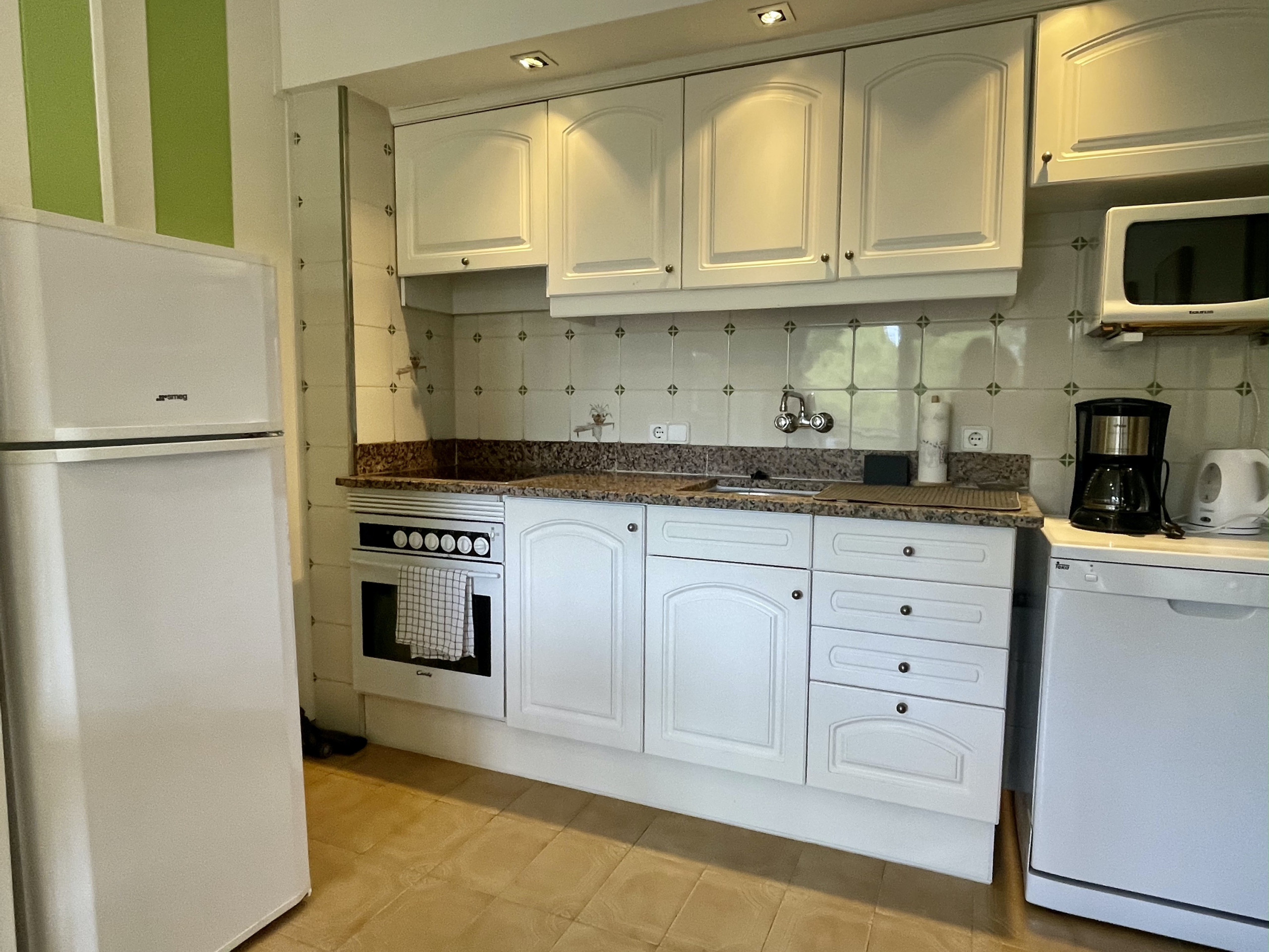 Die Wohnung verfügt über ein Schlafzimmer und ein Badezimmer sowie eine voll ausgestattete offene Küche mit Kühlschrank, Mikrowelle, Backofen, Gefrierschrank, Waschmaschine, Geschirrspüler, Geschirr/Besteck, Kochutensilien, Kaffeemaschine und Toaster. Das Wohnzimmer ist gemütlich und mit einem Fernseher und Klimaanlage ausgestattet. Die Terrasse der Wohnung eignet sich perfekt, um einen Kaffee zu genießen oder im Freien zu essen. Bettwäsche ist im Preis inbegriffen, und falls Sie Handtücher benötigen, stehen sie für 5 Euro pro Person zur Verfügung.